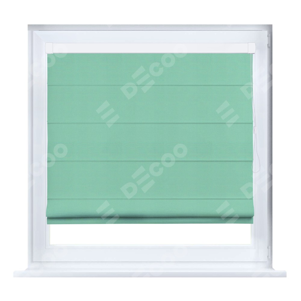 Римская штора кассетного типа, производителя «Cortin», устанавливается только на пластиковые окна и прилегает к стеклопакету, пошита из ткани pipa блэкаут бирюза, артикул 81852.