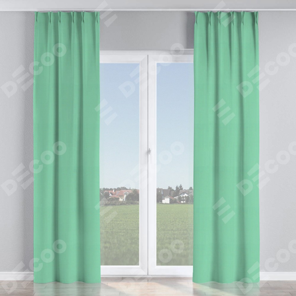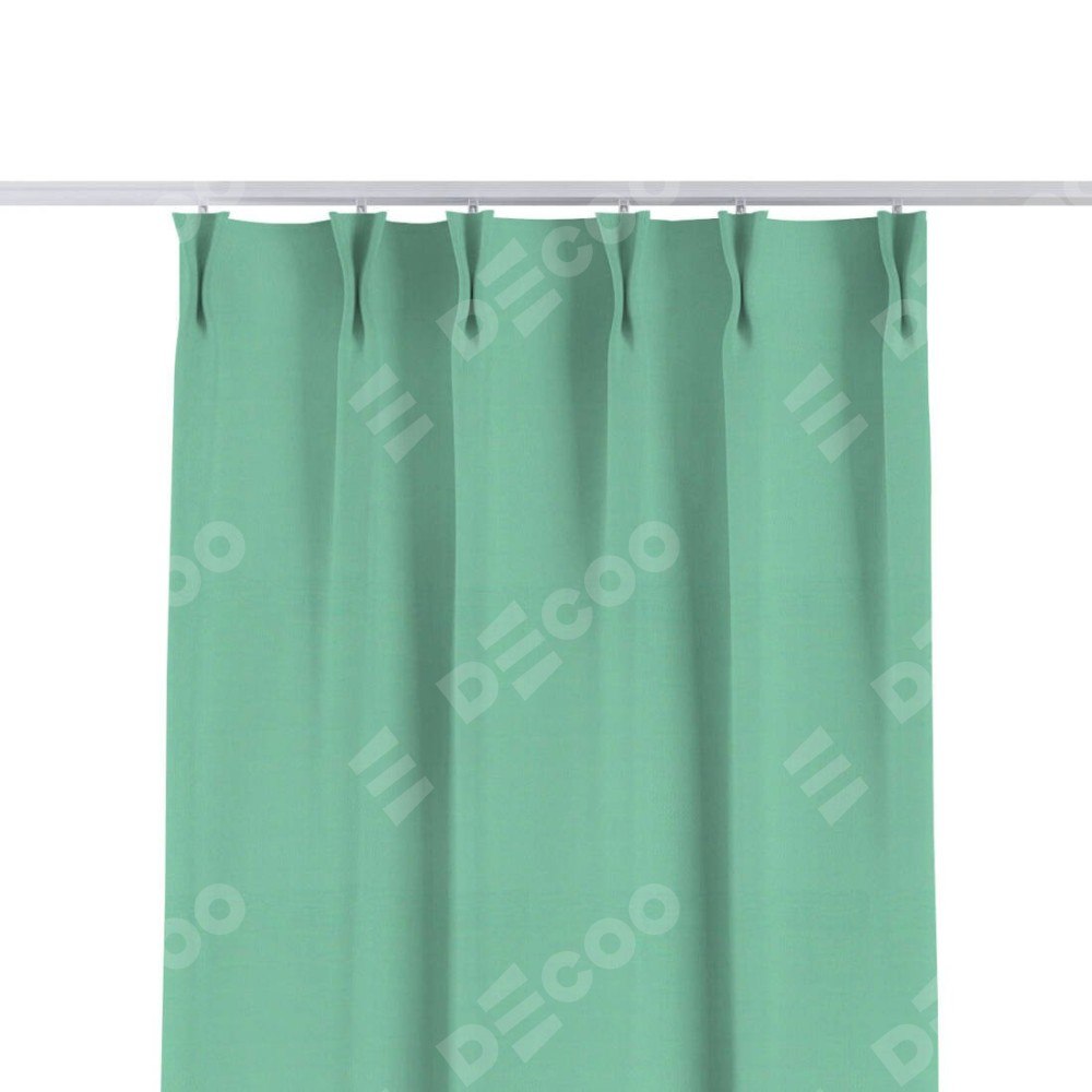 Комплект прямых штор, от производителя «Cortin», пошиты из ткани pipa блэкаут бирюза, артикул ткани 81852. С изнаночной стороны в верхней части штор пристрачивается шторная лента с декоративными складками «Кустик». Для создания элегантных складок прямые шторы шьются по стандарту с коэффициентом 1:2 (на 100 см. ширины проёма 200 см. ширины ткани).