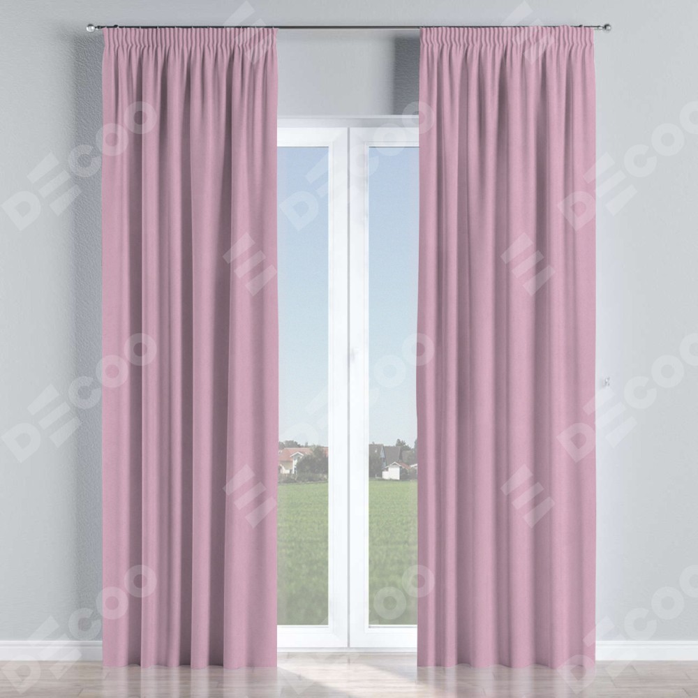 Комплект прямых штор, от производителя «Cortin», пошиты из ткани pipa блэкаут розовый, артикул ткани 12091. С изнаночной стороны в верхней части штор пристрачивается шторная лента с декоративными складками «Карандаш». Для создания элегантных складок прямые шторы шьются по стандарту с коэффициентом 1:2 (на 100 см. ширины проёма 200 см. ширины ткани).