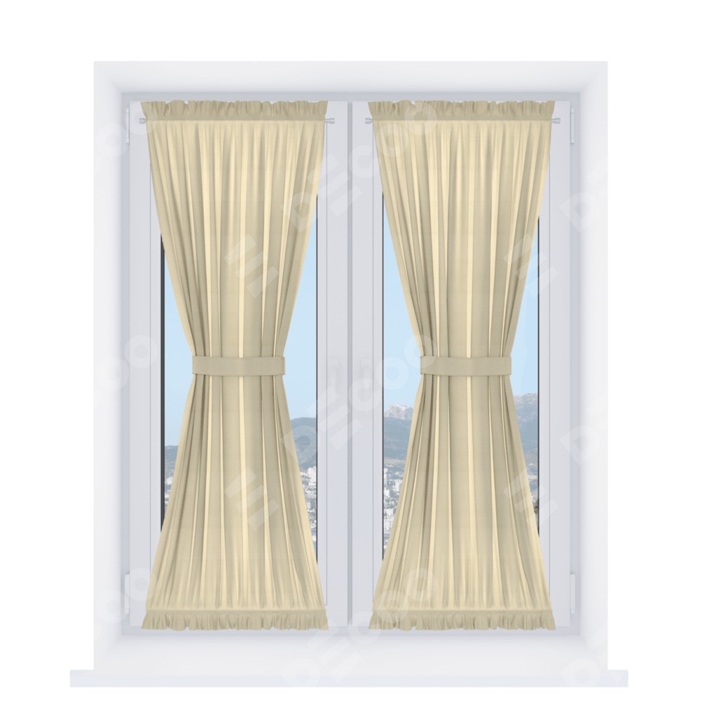 Штора «Песочные часы» производителя «Cortin», используется для створок окон и дверей, пошита из ткани блэкаут однотонный милано латте, артикул ткани 05.