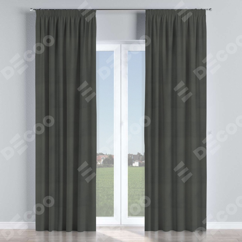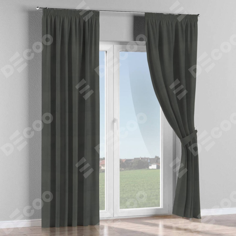 Комплект прямых штор, от производителя «Cortin», пошиты из ткани бархат серый, артикул ткани 5024. С изнаночной стороны в верхней части штор пристрачивается шторная лента с декоративными складками «Карандаш». Для создания элегантных складок прямые шторы шьются по стандарту с коэффициентом 1:2 (на 100 см. ширины проёма 200 см. ширины ткани).