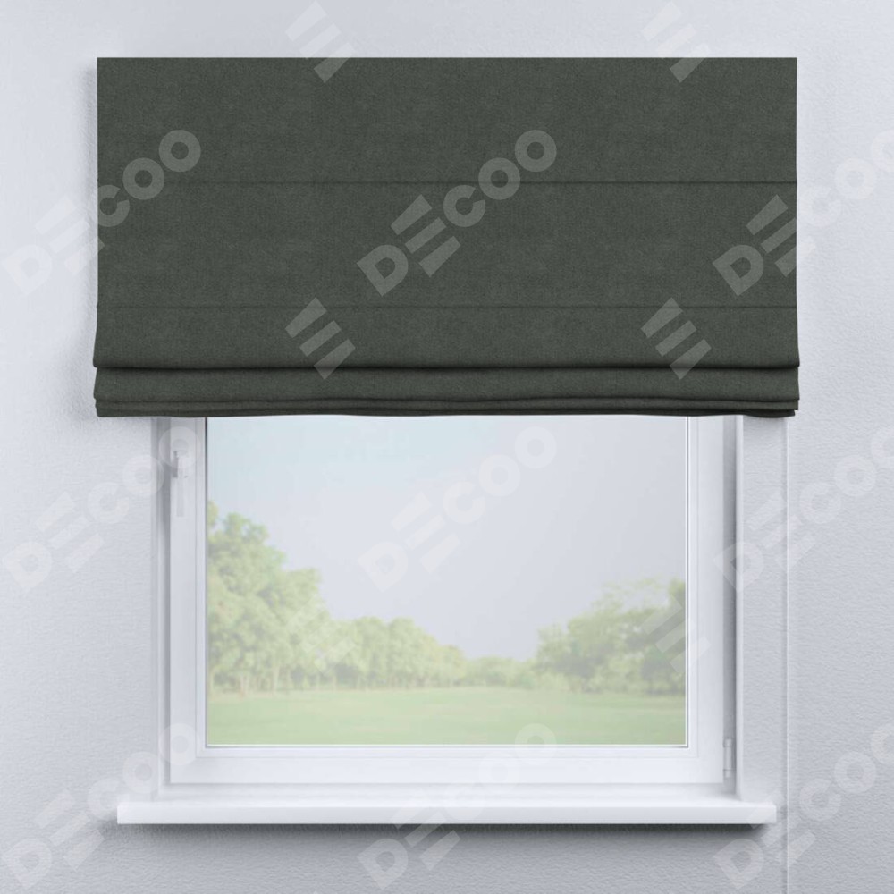 Римская штора производителя «Cortin», используется для проёма, пошита из ткани cotton блэкаут серый, артикул ткани 35279. Имеет универсальный механизм и подходит для монтажа: на потолок, на стену и в нишу.