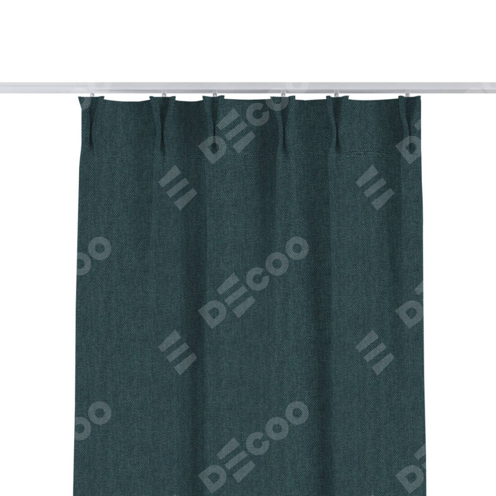 Комплект прямых штор, от производителя «Cortin», пошиты из ткани лён димаут серо-синий, артикул ткани 03238. С изнаночной стороны в верхней части штор пристрачивается шторная лента с декоративными складками «Кустик». Для создания элегантных складок прямые шторы шьются по стандарту с коэффициентом 1:2 (на 100 см. ширины проёма 200 см. ширины ткани).