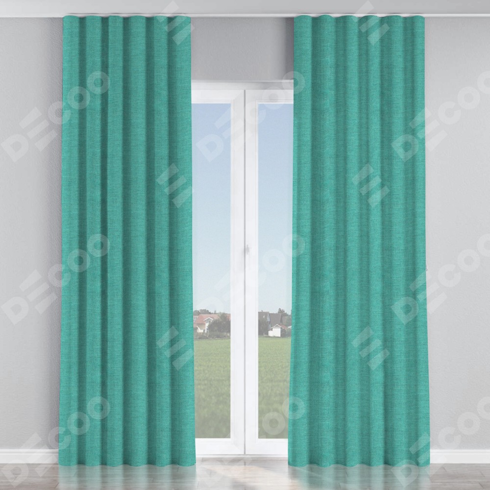 Комплект прямых штор, от производителя «Cortin», пошиты из ткани лён изумрудный, артикул ткани 85908. С изнаночной стороны в верхней части штор пристрачивается шторная лента с декоративными складками «Волна». Для создания элегантных складок прямые шторы шьются по стандарту с коэффициентом 1:2 (на 100 см. ширины проёма 200 см. ширины ткани).