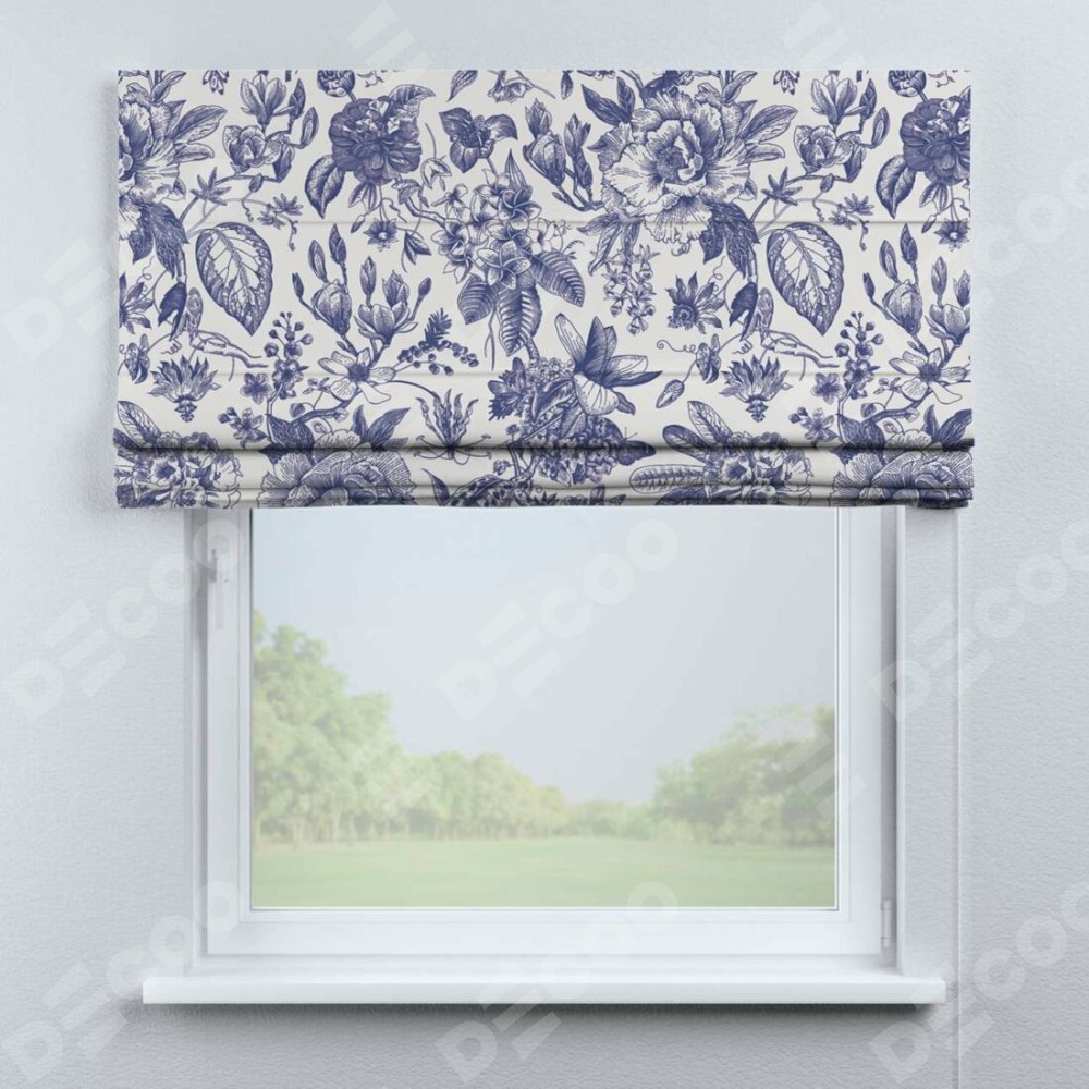 Римская штора производителя «Cortin», используется для проёма, пошита из ткани блэкаут с нанесением сублимационной печати «Прованс в синем». Имеет универсальный механизм и подходит для монтажа: на потолок, на стену и в нишу.
