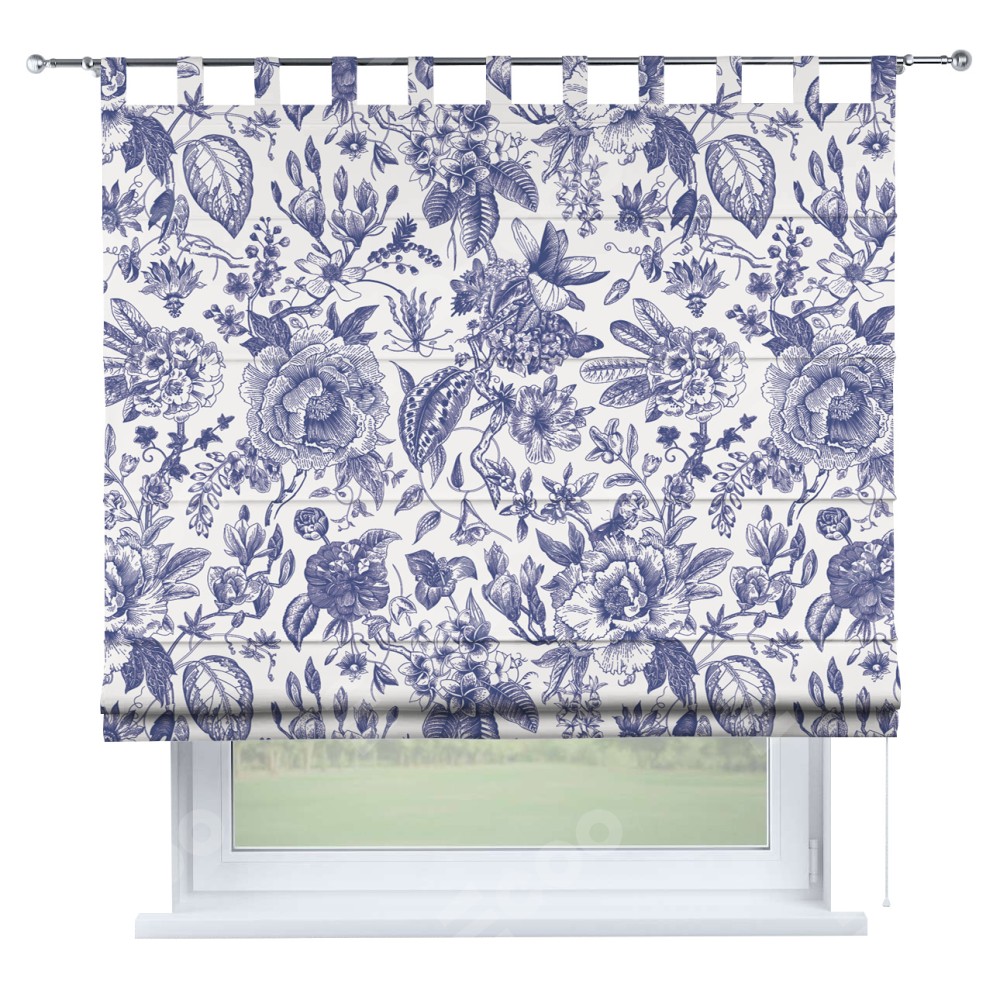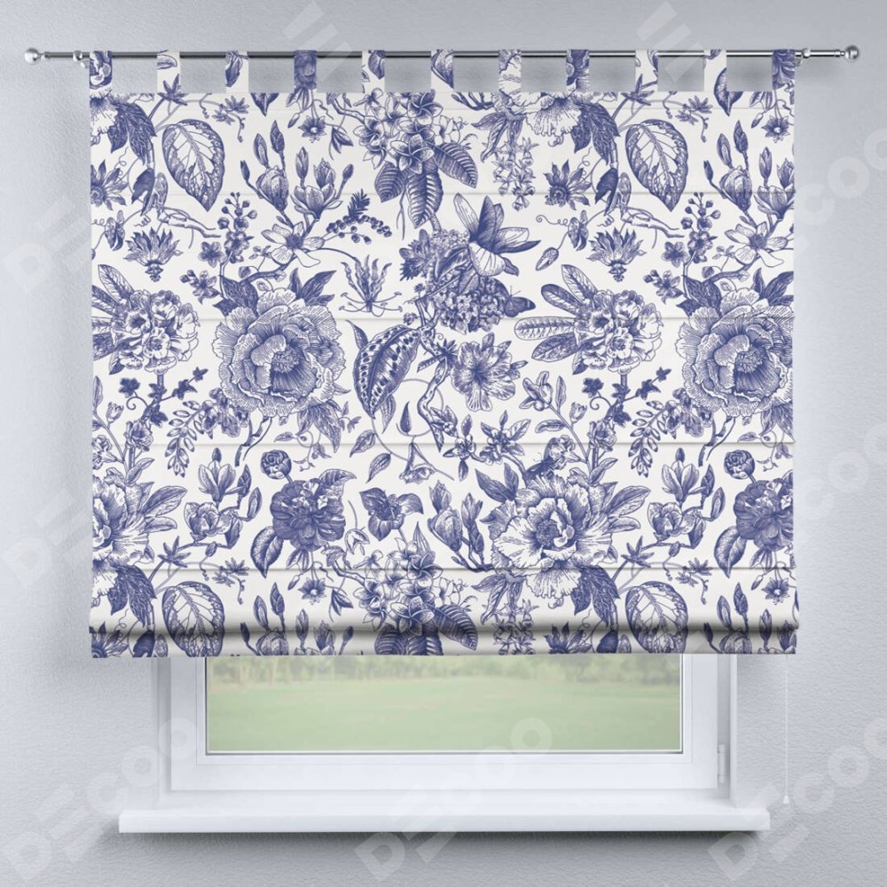 Римская штора производителя «Cortin», используется для проёма, пошита из ткани блэкаут с нанесением сублимационной печати «Прованс в синем». Данная модель пошита на петлях, комплектуется на выбор круглым карнизом и подходит для монтажа на стену. Римская штора на петлях имеет простую систему регулировки высоты, отличительным преимуществом данной модели является простой способ монтажа. Достаточно повесить ее на трубу и штора готова!