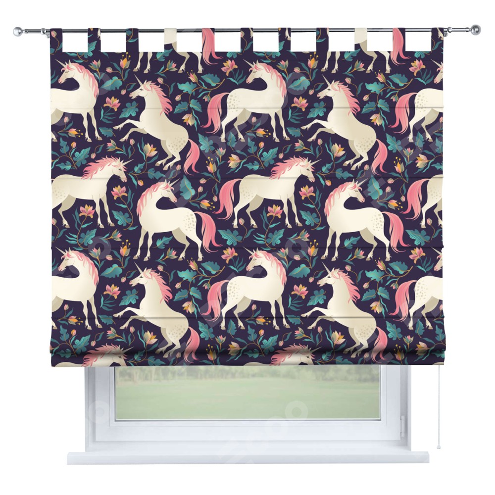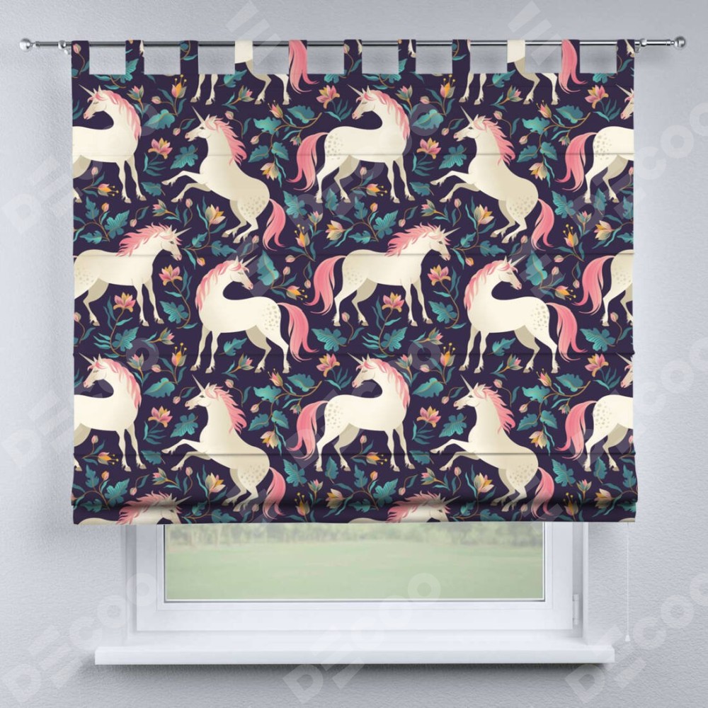 Римская штора на петлях «Сказочные единороги»