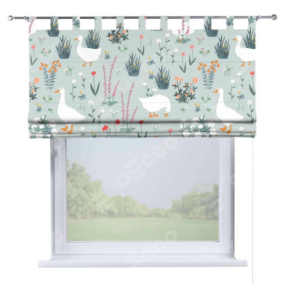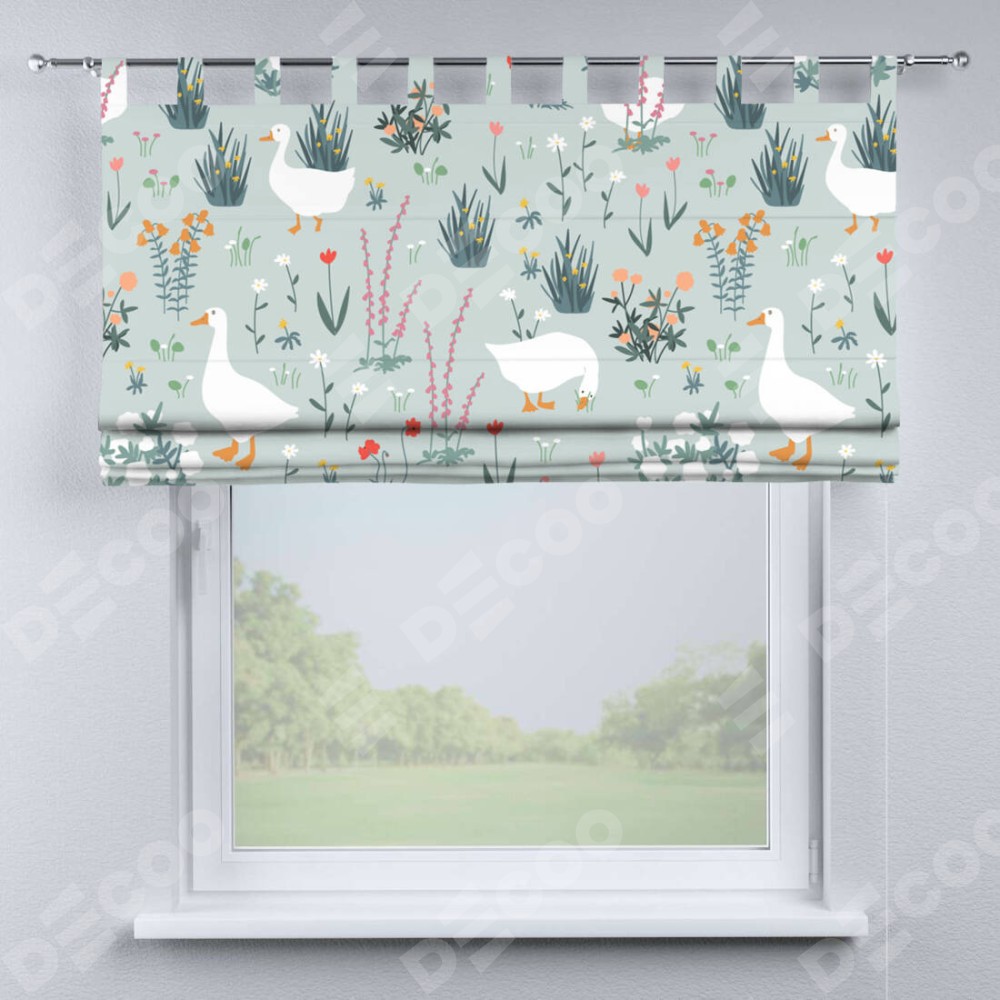 Римская штора производителя «Cortin», используется для проёма, пошита из ткани блэкаут с нанесением сублимационной печати «Гуси на лугу». Данная модель пошита на петлях, комплектуется на выбор круглым карнизом и подходит для монтажа на стену. Римская штора на петлях имеет простую систему регулировки высоты, отличительным преимуществом данной модели является простой способ монтажа. Достаточно повесить ее на трубу и штора готова!