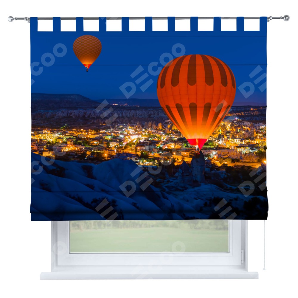 Римская штора производителя «Cortin», используется для проёма, пошита из ткани блэкаут с нанесением сублимационной печати «Воздушные шары в небе». Данная модель пошита на петлях, комплектуется на выбор круглым карнизом и подходит для монтажа на стену. Римская штора на петлях имеет простую систему регулировки высоты, отличительным преимуществом данной модели является простой способ монтажа. Достаточно повесить ее на трубу и штора готова!