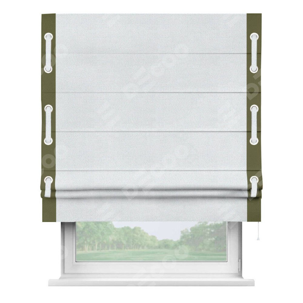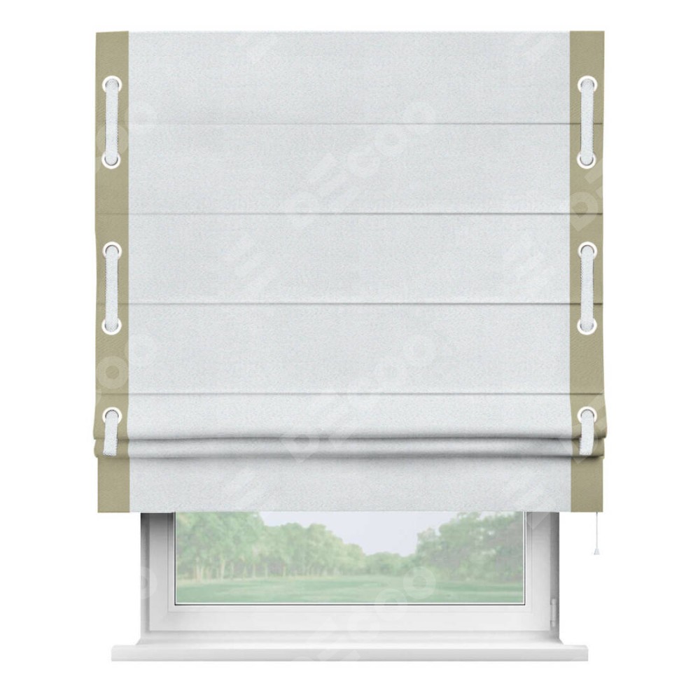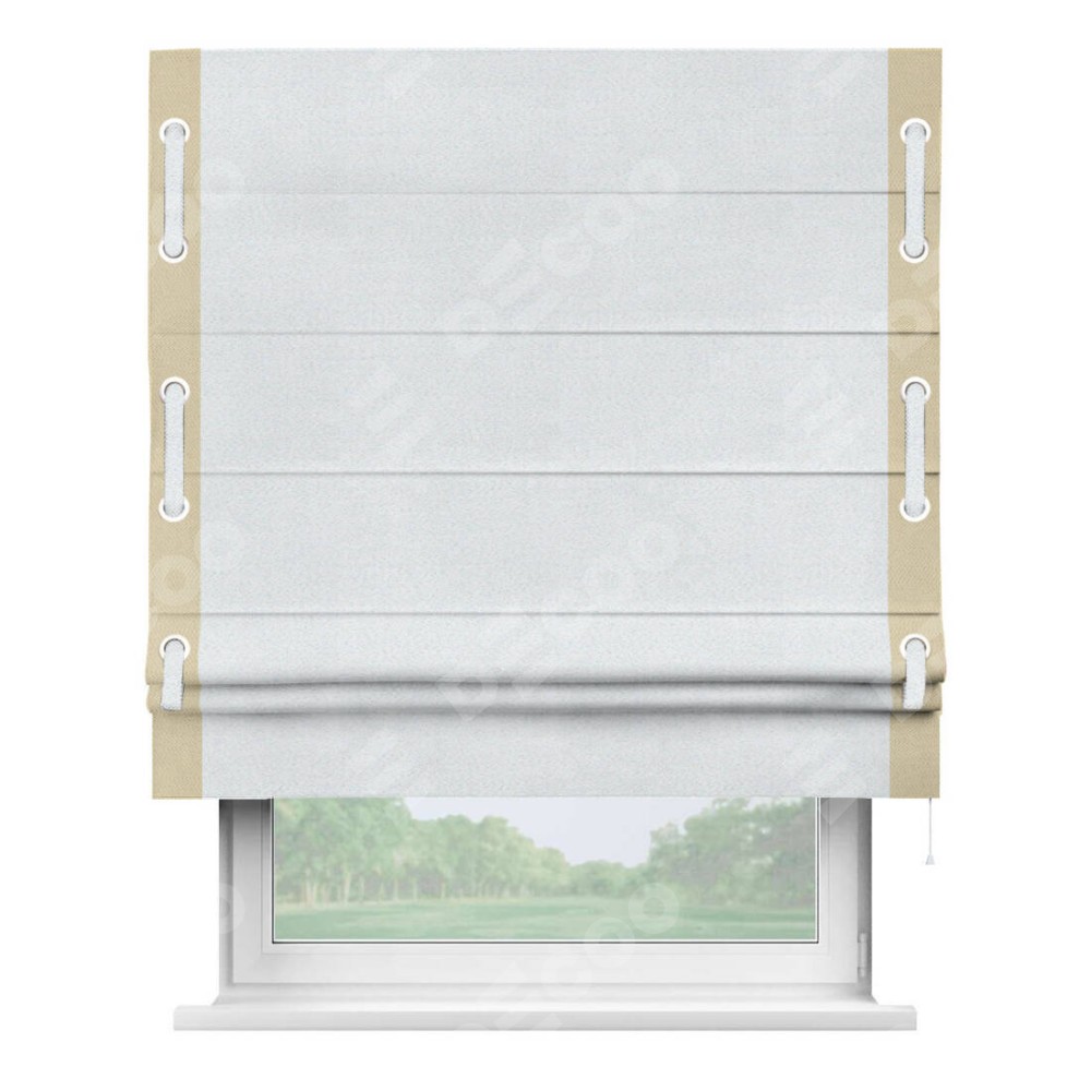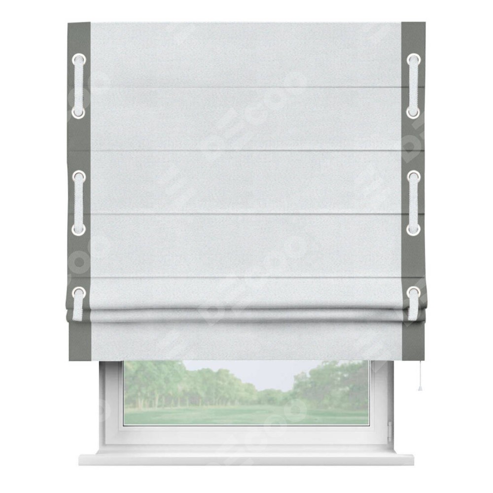 Римская штора «Кортин» с кантом Стрим Дуо (люверсы с пояском), для проема, ткань блэкаут однотонный дымчато-белый