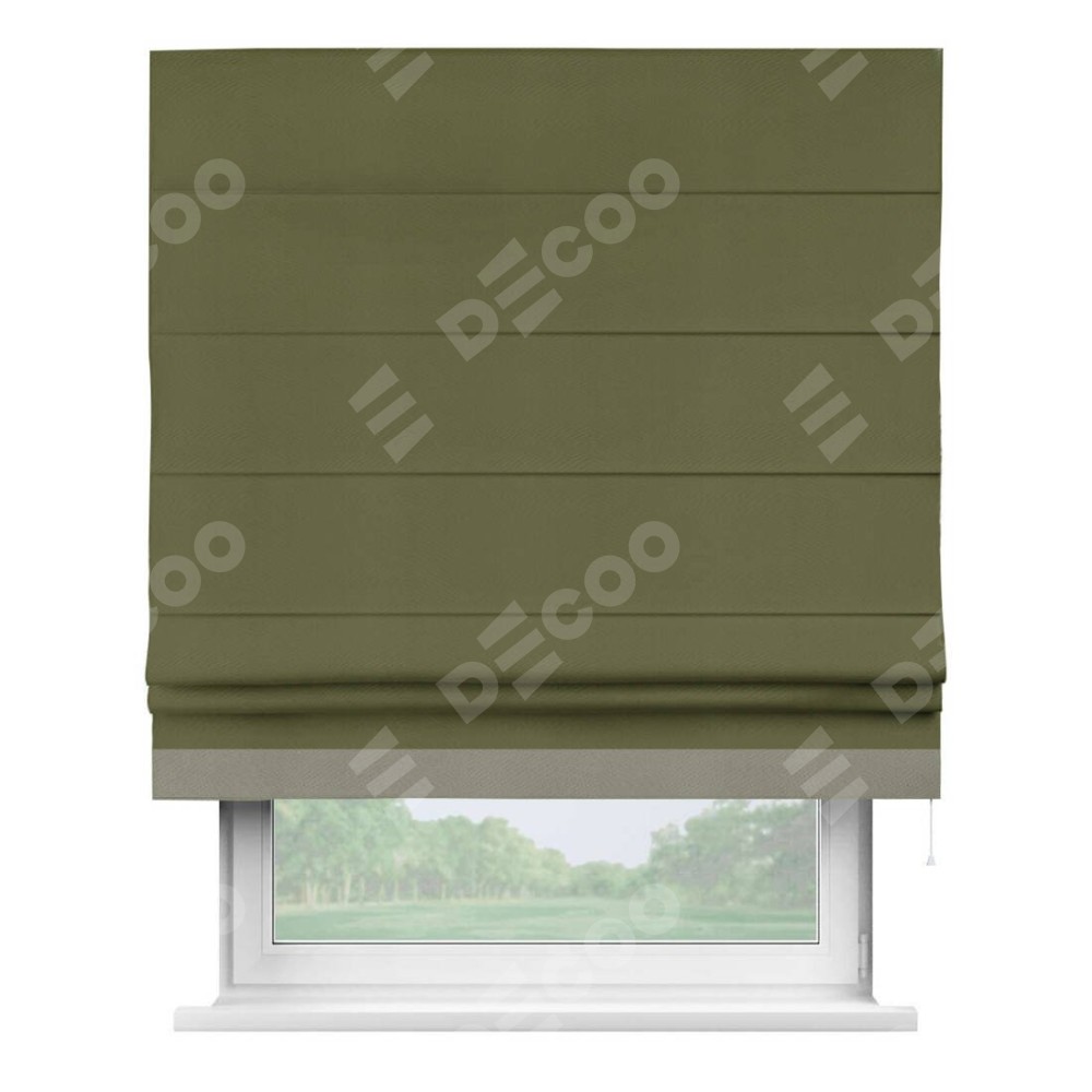 Римская штора «Кортин» с кантом Джестер, для проема, ткань блэкаут однотонный зелёный