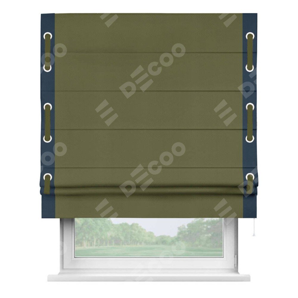 Римская штора «Кортин» с кантом Стрим Дуо (люверсы с пояском), для проема, ткань блэкаут однотонный зелёный