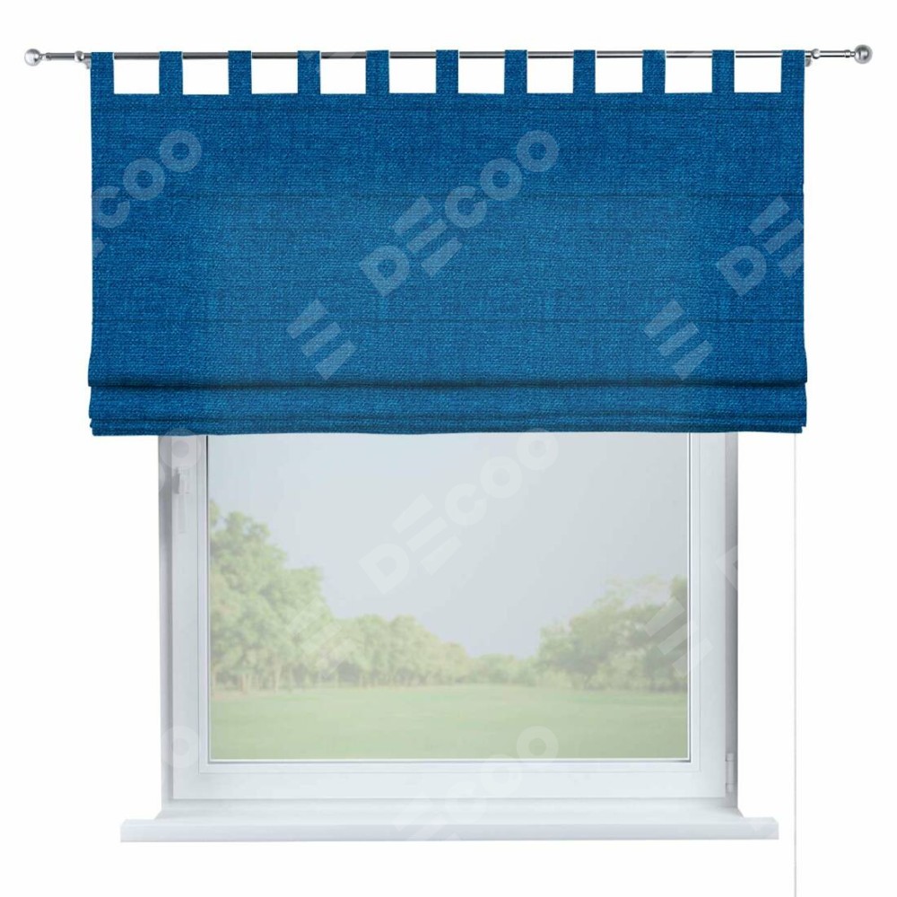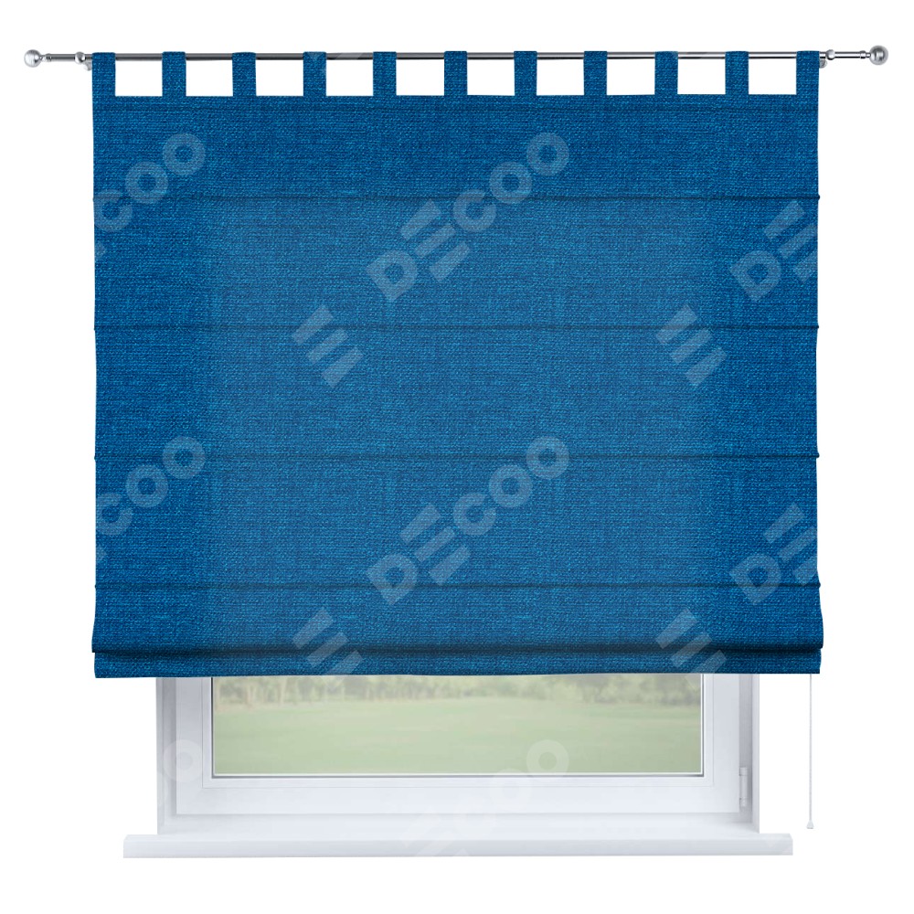 Римская штора на петлях «Кортин», ткань лён синий