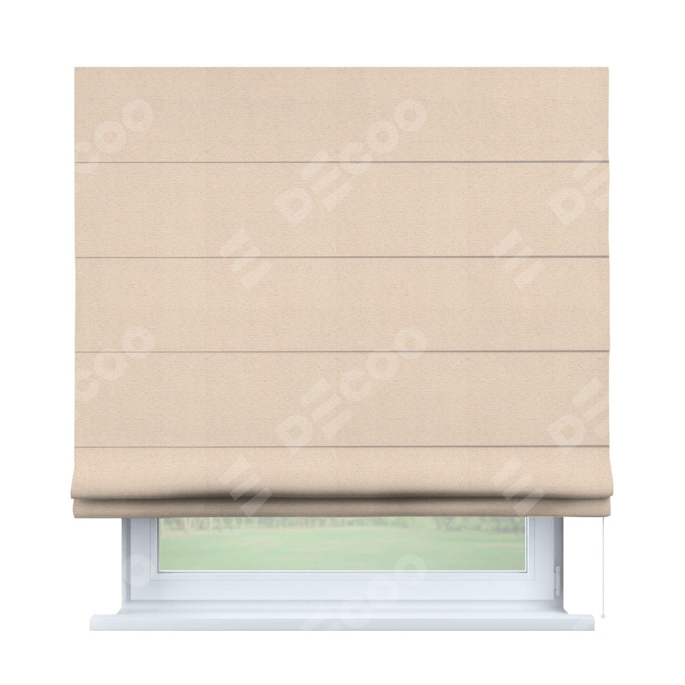 Римская штора производителя «Cortin», используется для проёма, пошита из ткани блэкаут тиснение с блеском розовая пудра, артикул ткани 34632. Изнаночная сторона материала черного цвета, что обеспечивает необходимую светонепроницаемость. Имеет универсальный механизм и подходит для монтажа: на потолок, на стену и в нишу.