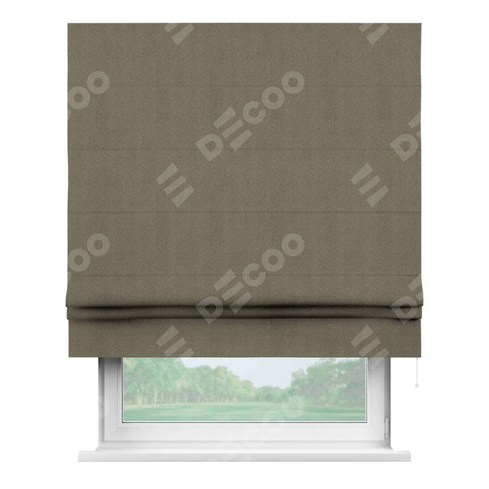 Римская штора производителя «Cortin», используется для проёма, пошита из ткани блэкаут тиснение с блеском графитовый, артикул ткани 34648. Изнаночная сторона материала черного цвета, что обеспечивает необходимую светонепроницаемость. Имеет универсальный механизм и подходит для монтажа: на потолок, на стену и в нишу.