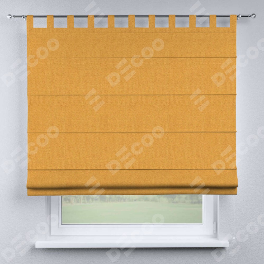 Римская штора производителя «Cortin», используется для проёма, пошита из ткани блэкаут тиснение с блеском золотой, артикул ткани 34626. Изнаночная сторона материала черного цвета, что обеспечивает необходимую светонепроницаемость. Данная модель пошита на петлях, комплектуется на выбор круглым карнизом и подходит для монтажа на стену. Римская штора на петлях имеет простую систему регулировки высоты, отличительным преимуществом данной модели является простой способ монтажа. Достаточно повесить ее на трубу и штора готова!