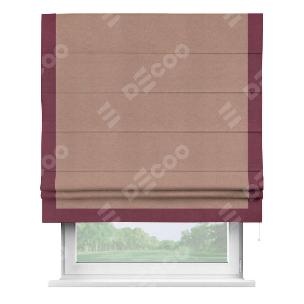 Римская штора «Кортин» с кантом Виктория, для проема, ткань вельвет брусничный джем