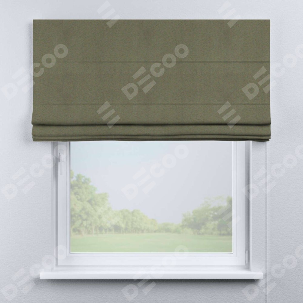 Римская штора производителя «Cortin», используется для проёма, пошита из ткани блэкаут однотонный серо-коричневый, артикул ткани 29568. Имеет универсальный механизм и подходит для монтажа: на потолок, на стену и в нишу.