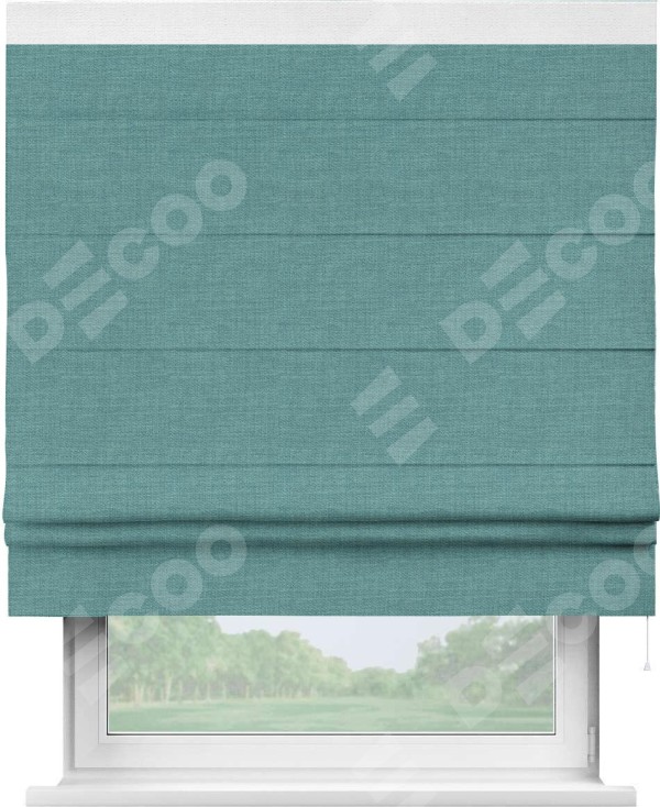 Римская штора «Кортин» с кантом Кинг, для проема, ткань лён бирюза