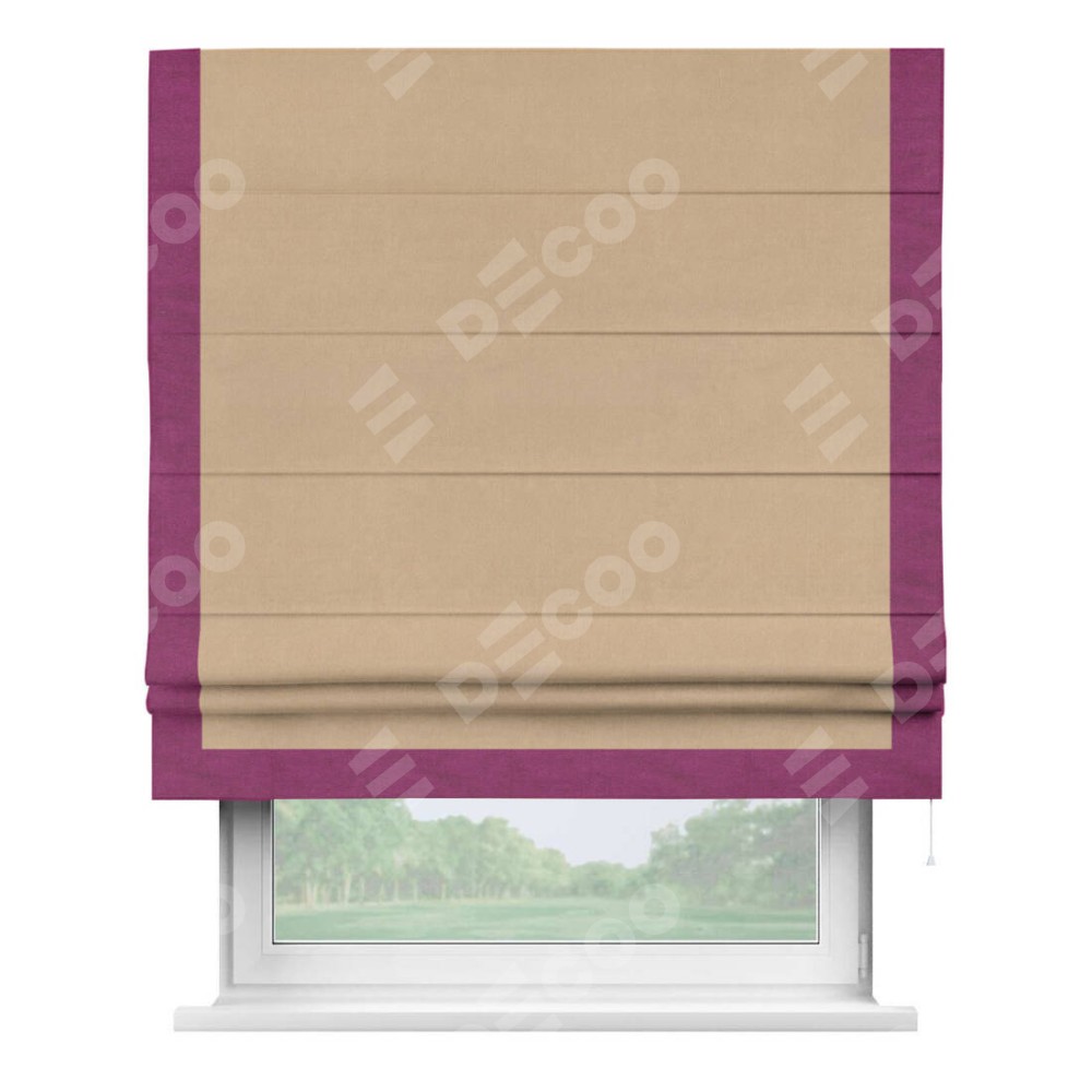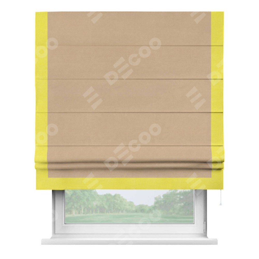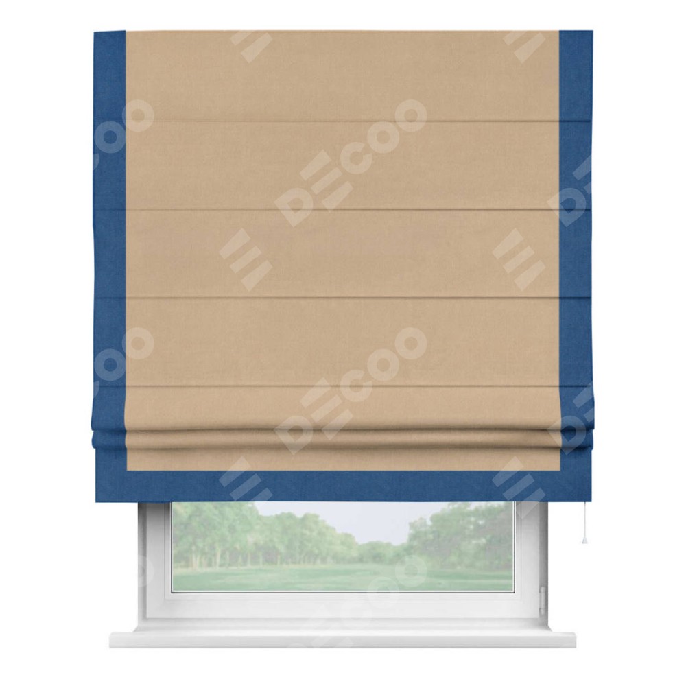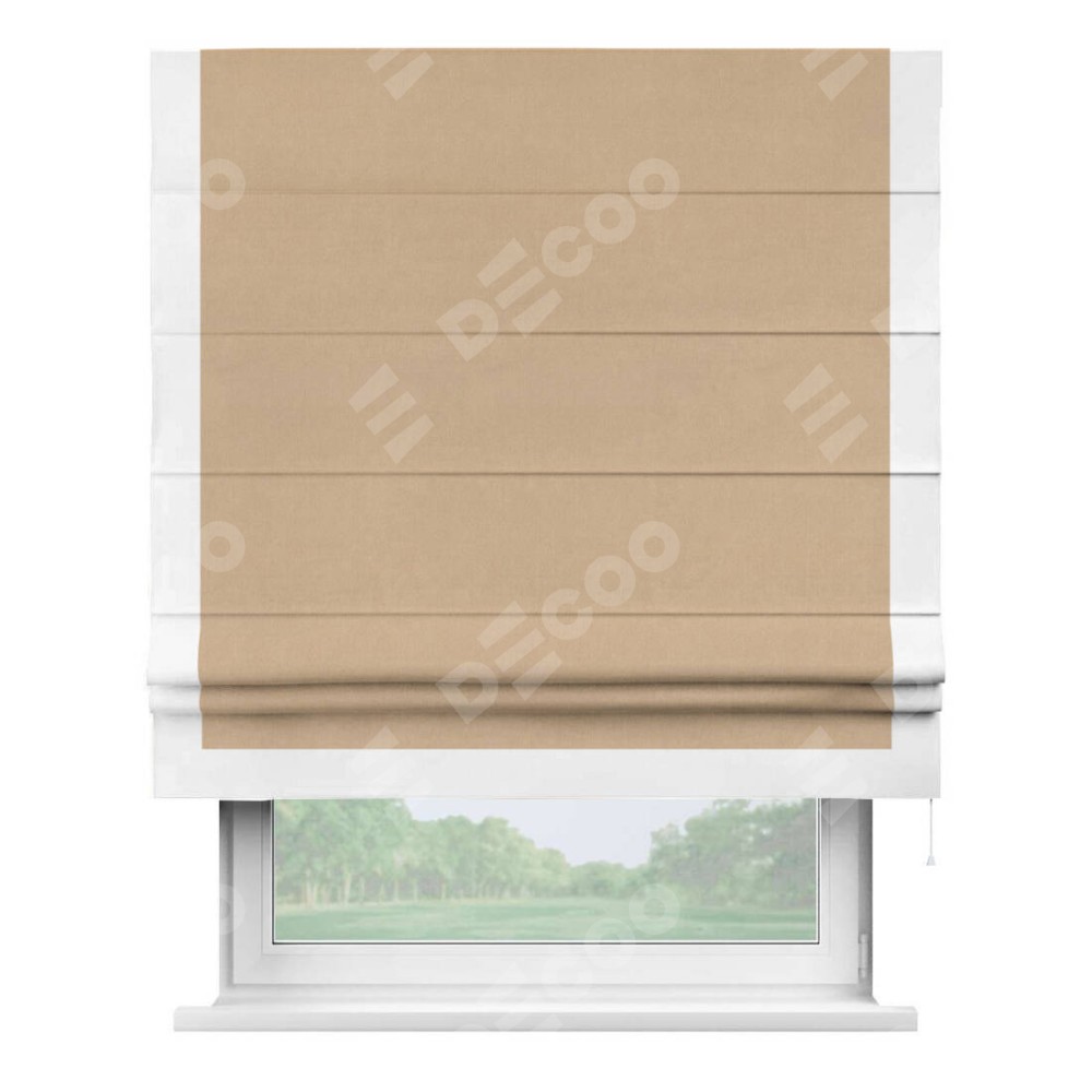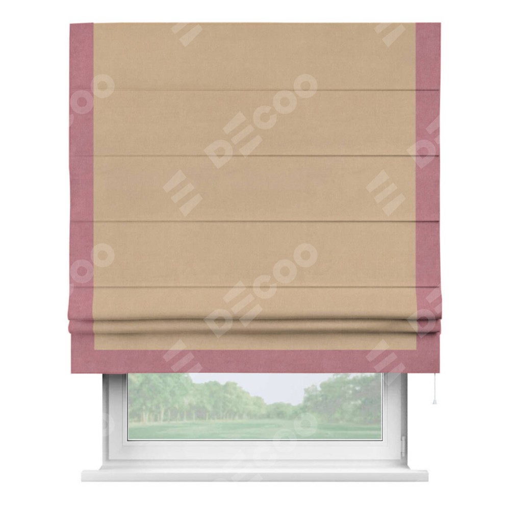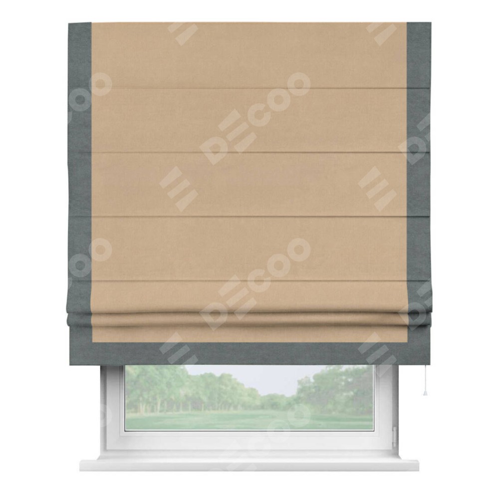 Римская штора «Кортин» с кантом Виктория, для проема, ткань вельвет песочный