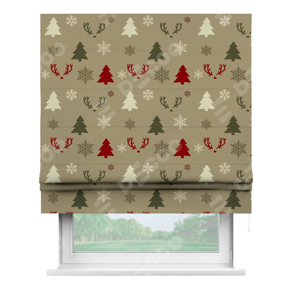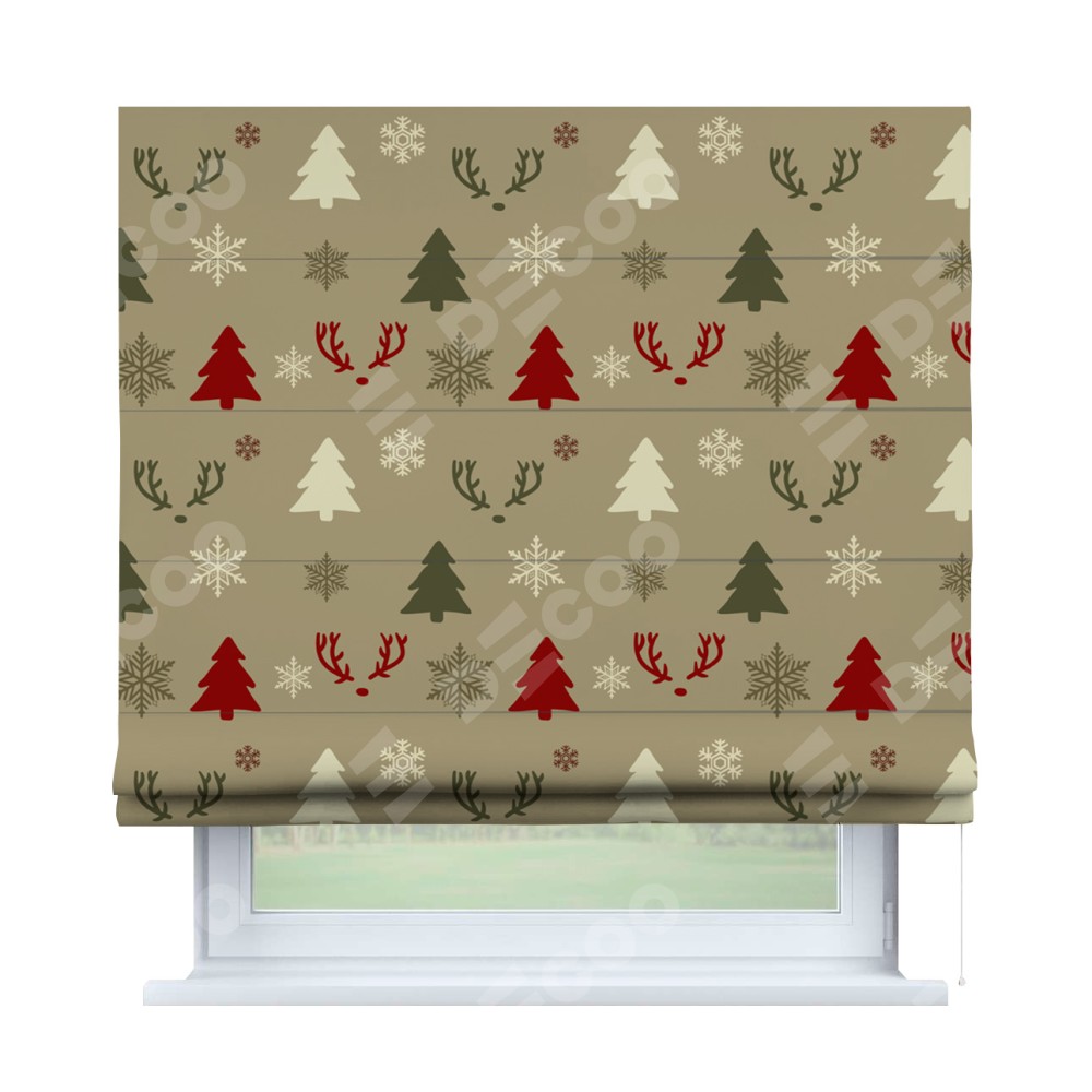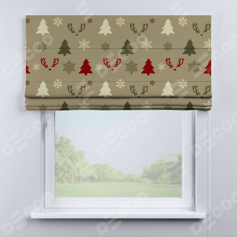 Римская штора производителя «Cortin», используется для проёма, пошита из ткани блэкаут с нанесением сублимационной печати «Гармония рождества». Имеет универсальный механизм и подходит для монтажа: на потолок, на стену и в нишу.