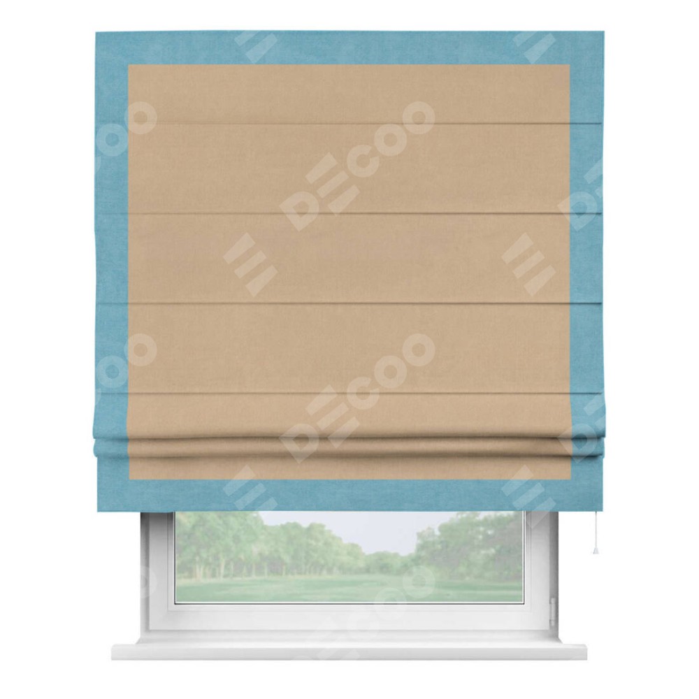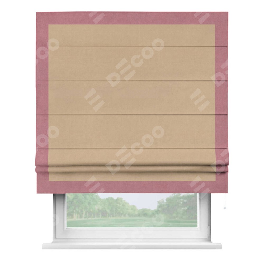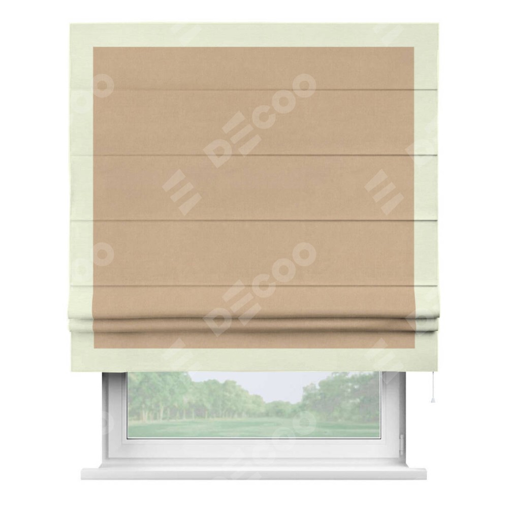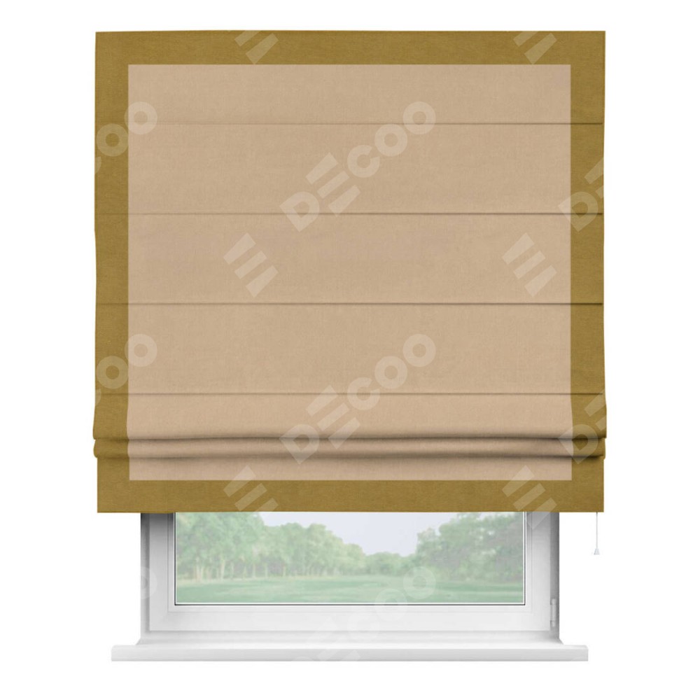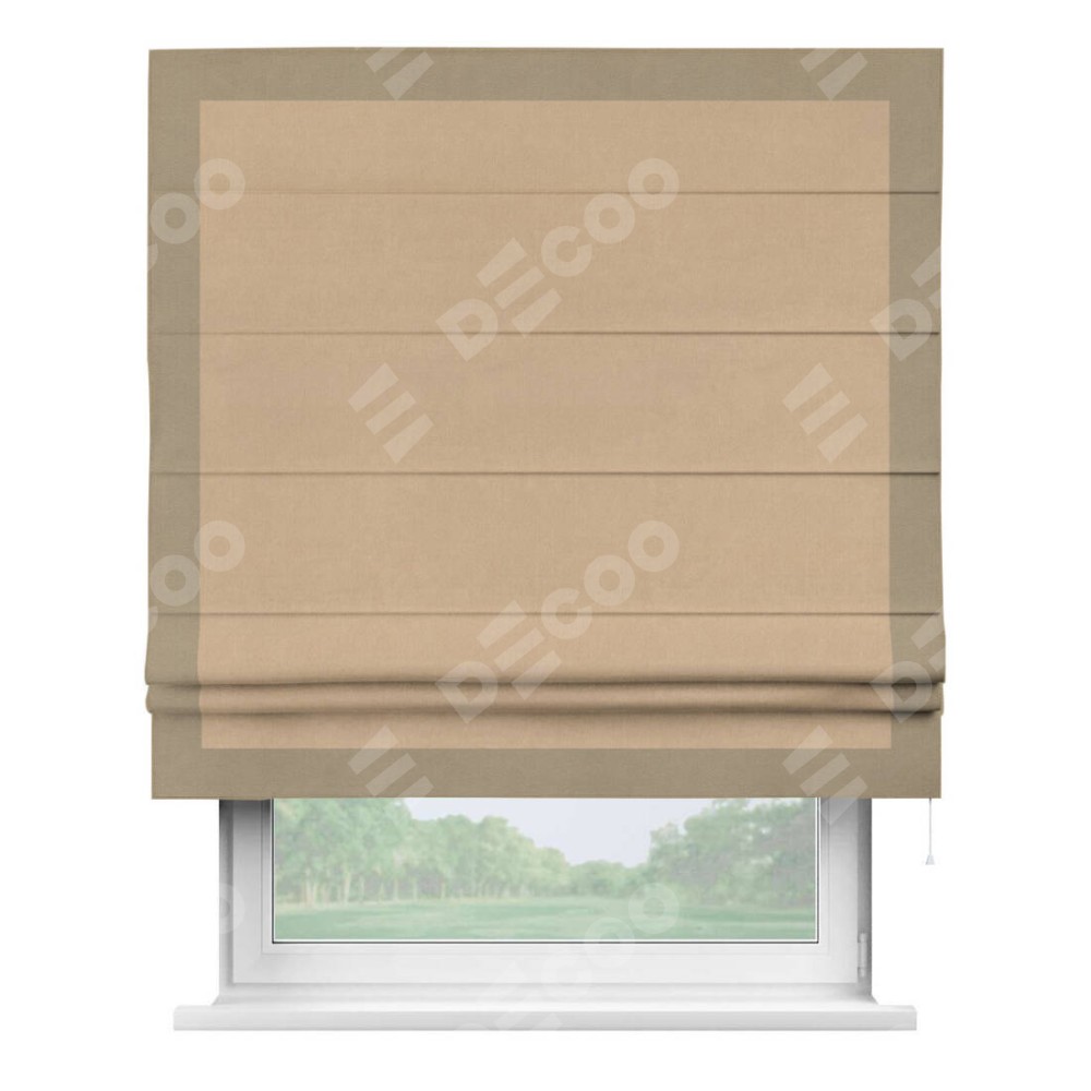 Римская штора «Кортин» с кантом Чесс, для проема, ткань вельвет песочный