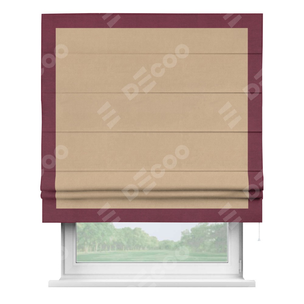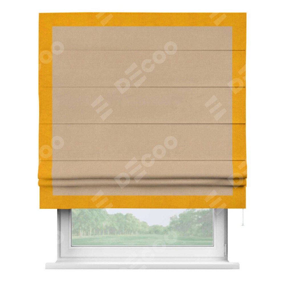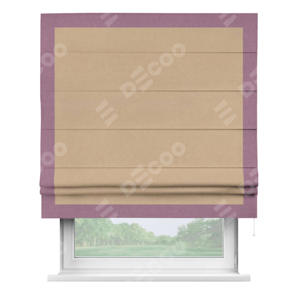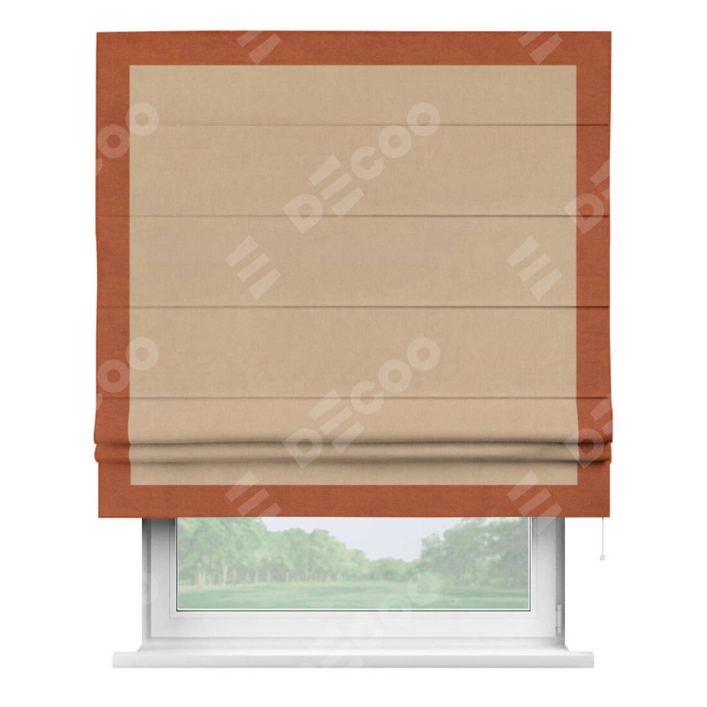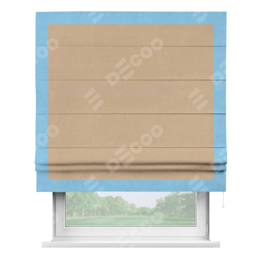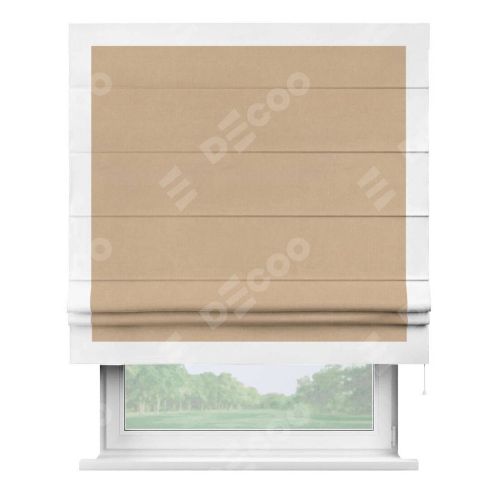 Римская штора «Кортин» с кантом Чесс, для проема, ткань вельвет песочный