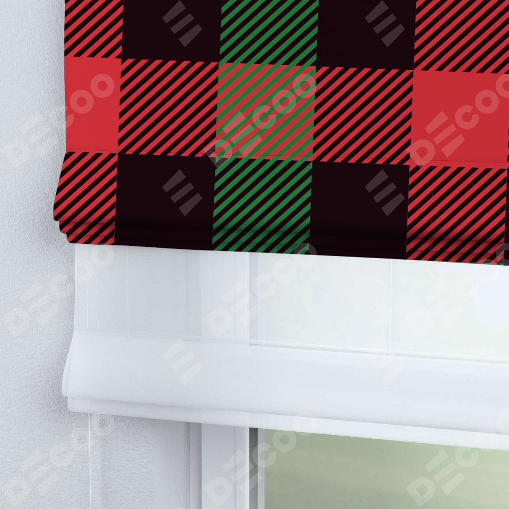 Римская штора день-ночь производителя «Cortin», используется для проёма, пошита из двух полотен, с лицевой блэкаут с нанесением сублимационной печати «Красочная клетка», вторая ткань тюль (по стандарту комплектуется тюль белого цвета артикул V-01). Имеет универсальный механизм и подходит для монтажа: на потолок, на стену и в нишу.