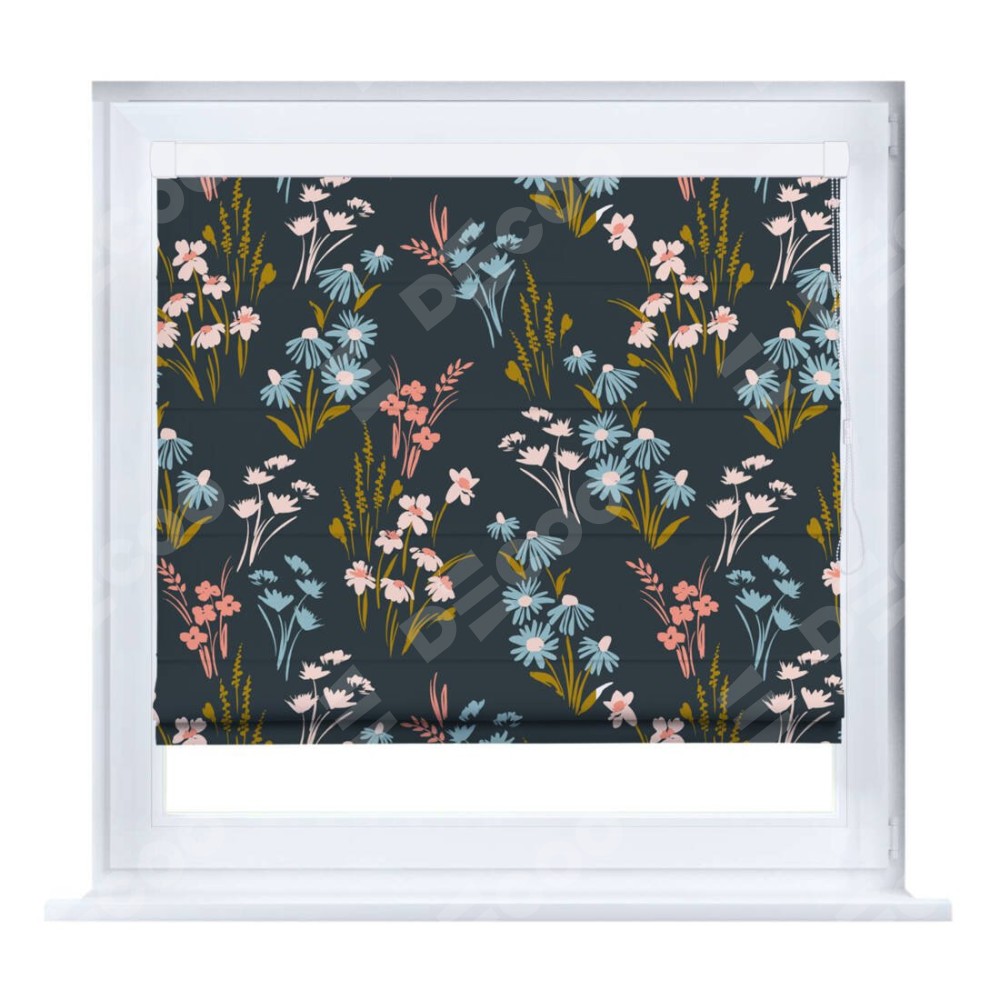 Римская штора производителя «Cortin», устанавливается на створку окна, пошита из ткани блэкаут с нанесением сублимационной печати «Чарующие цветы». Штора шьётся по индивидуальным размерам, для данного типа римской шторы возможная ширина от 35 до 150 см., высота до 250 см.