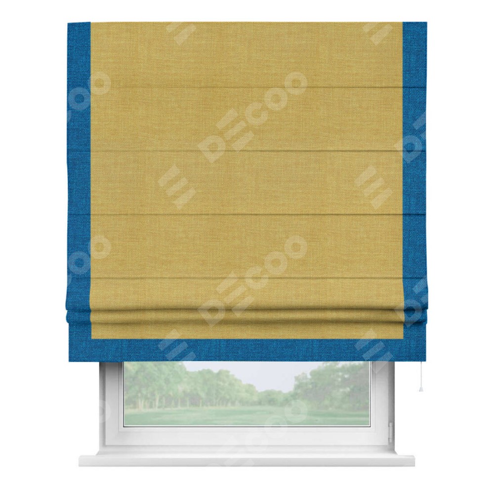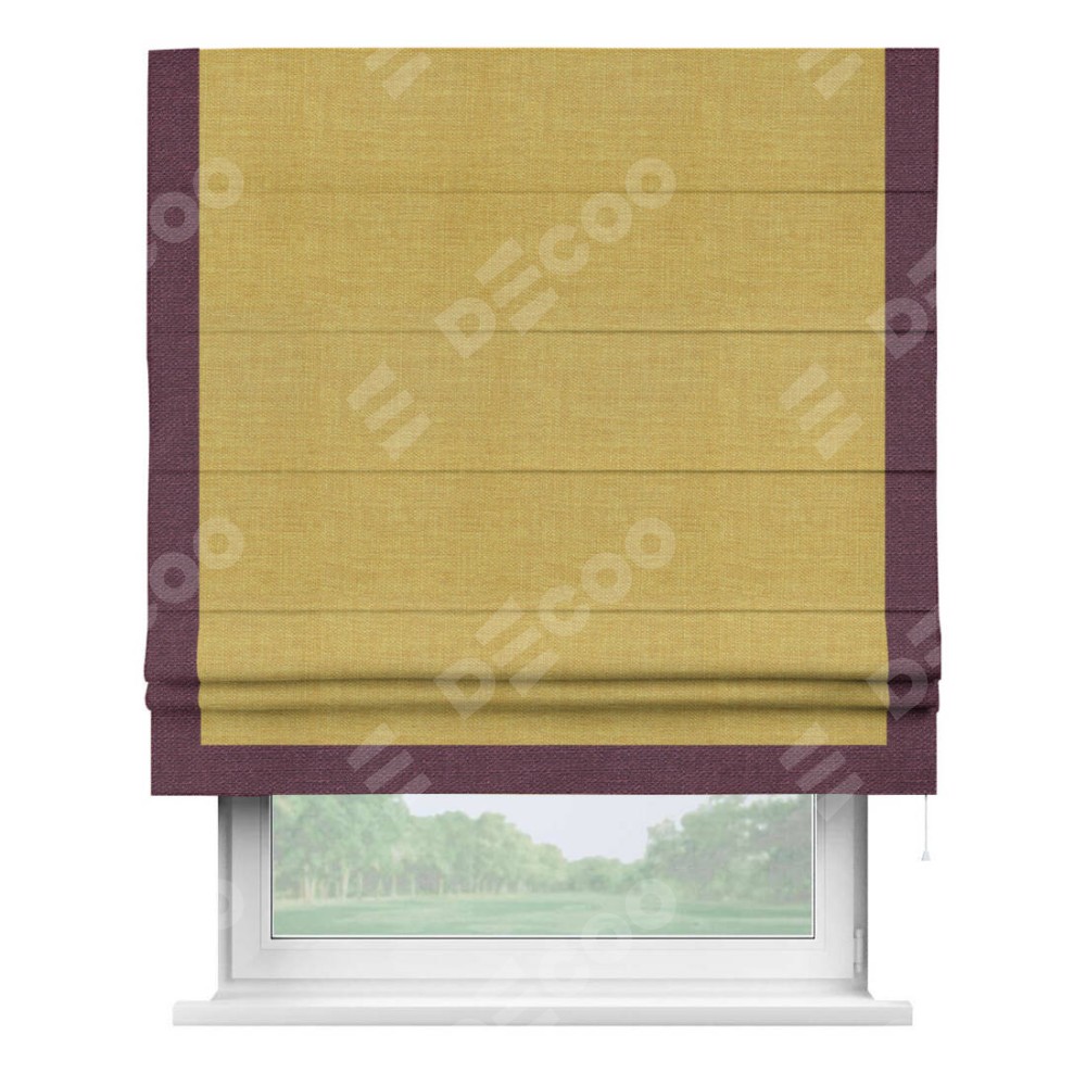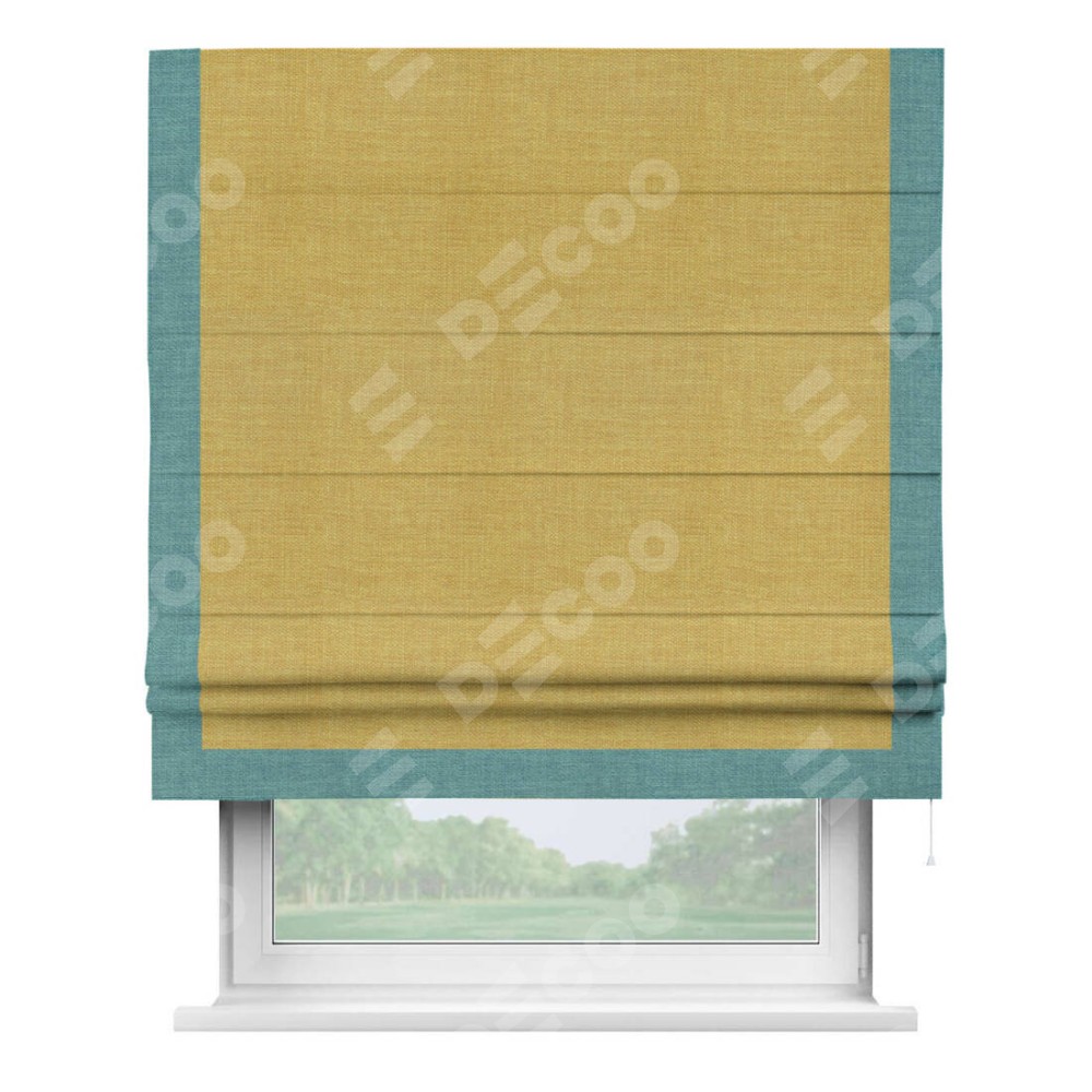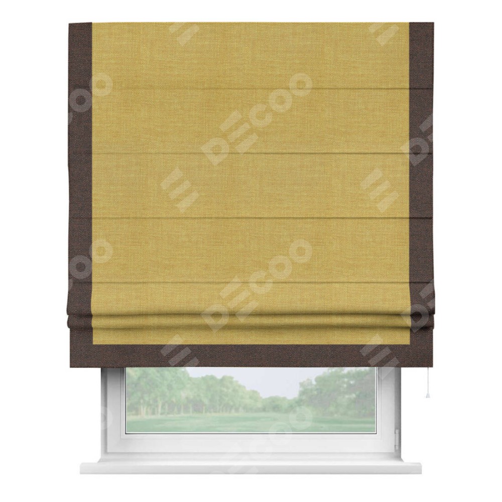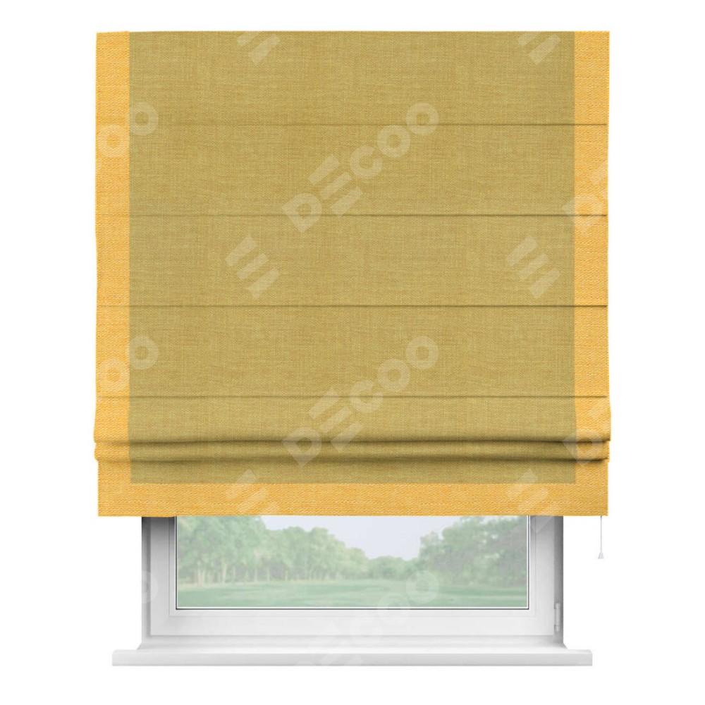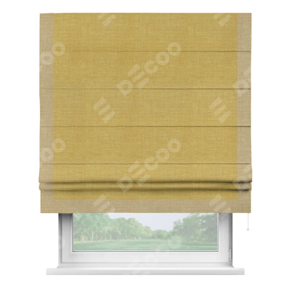 Римская штора «Кортин» с кантом Виктория, для проема, ткань лён горчичный