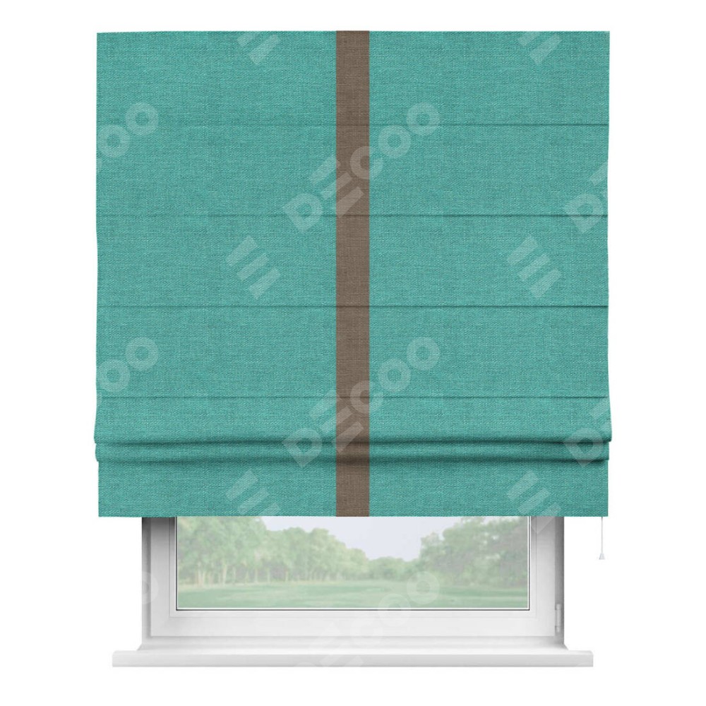 Римская штора «Кортин» с кантом Хайвэй, для проема, ткань лён изумрудный