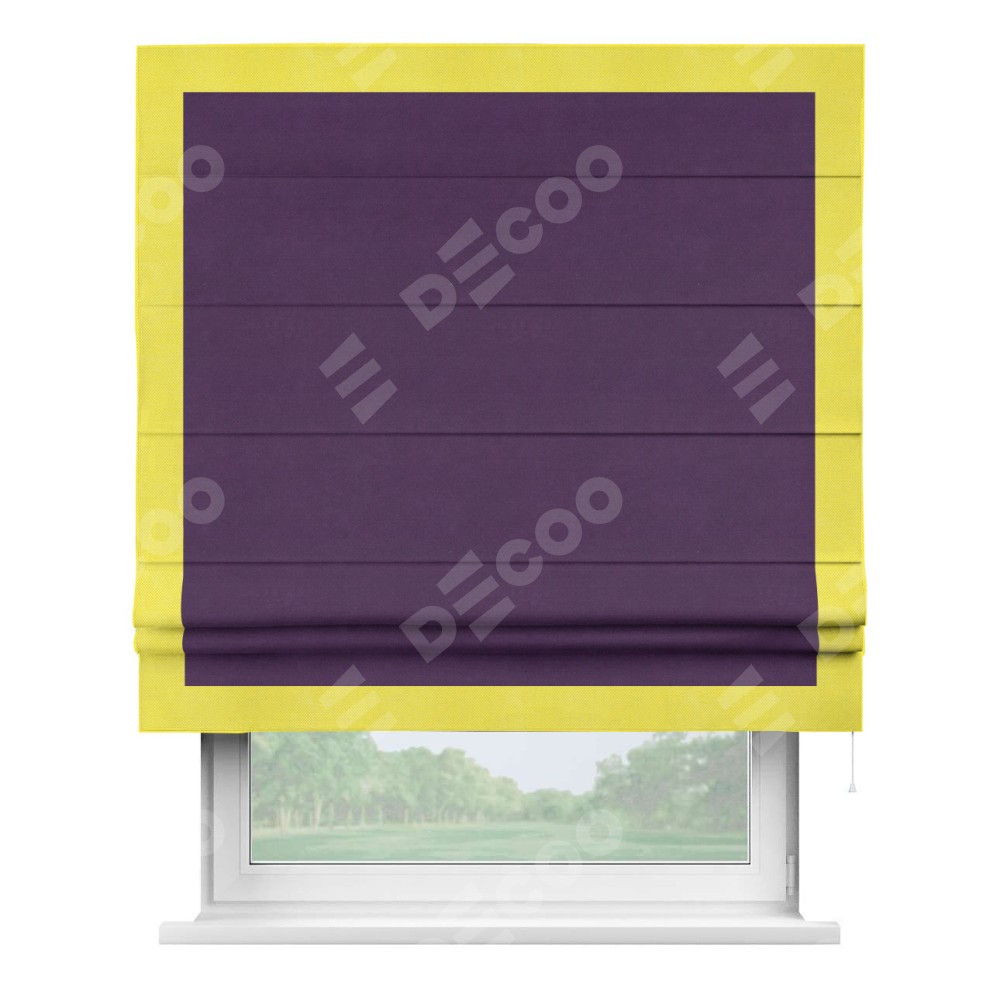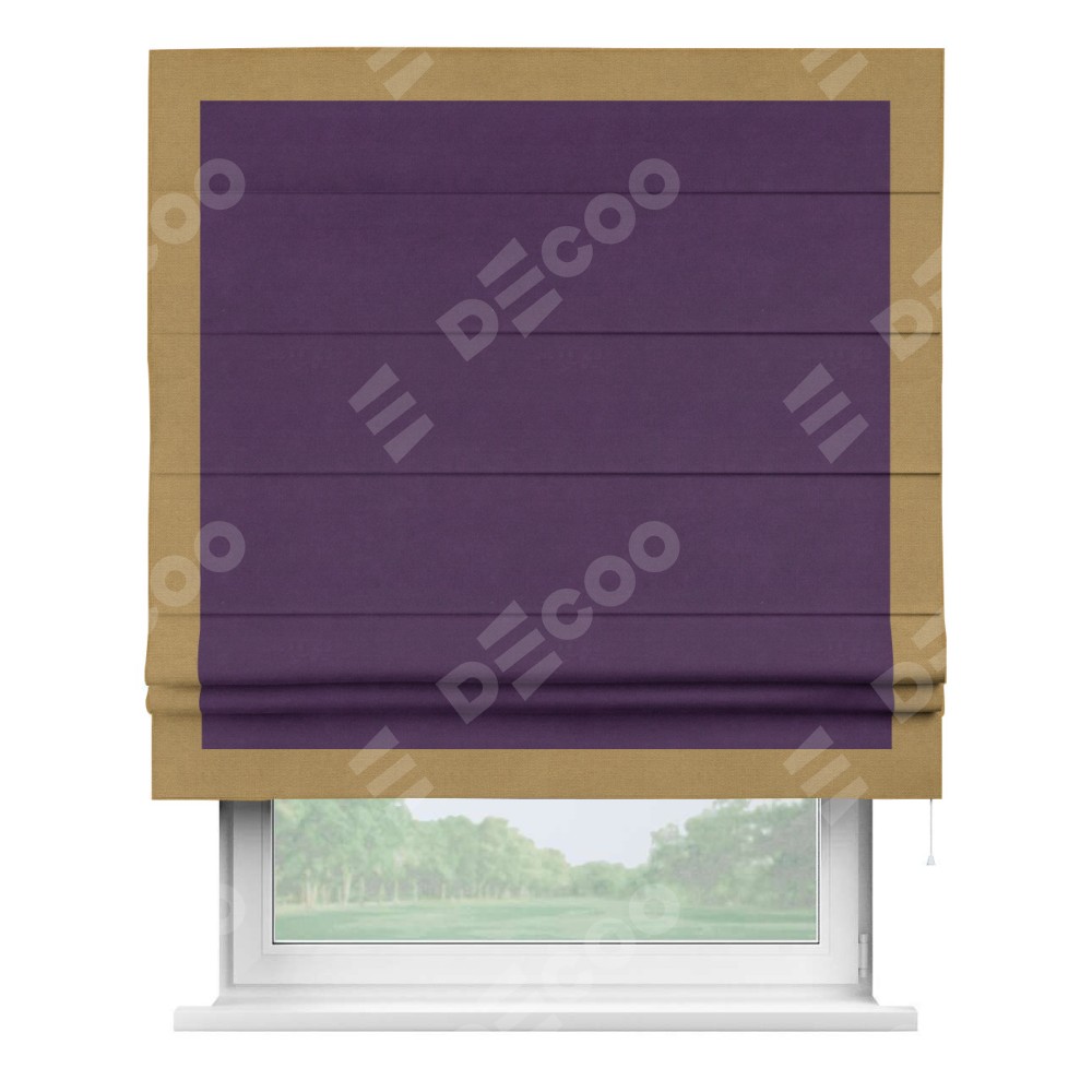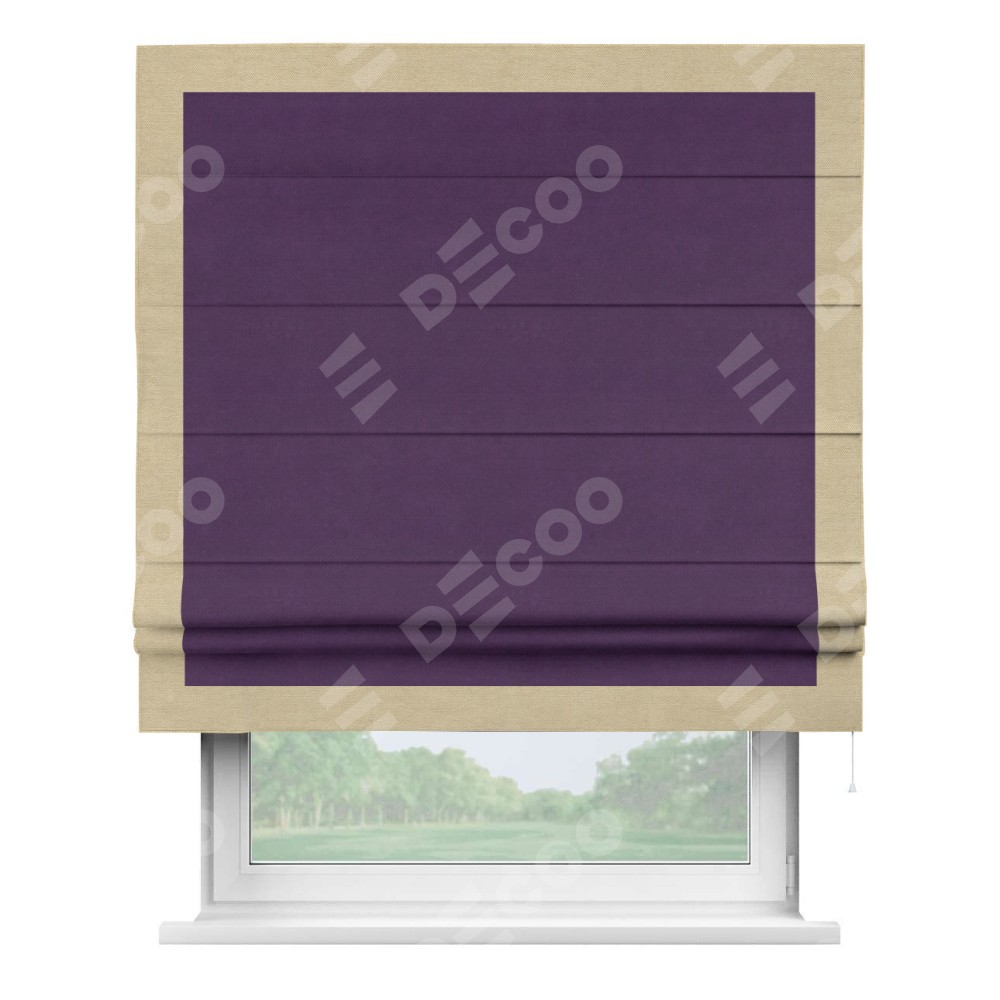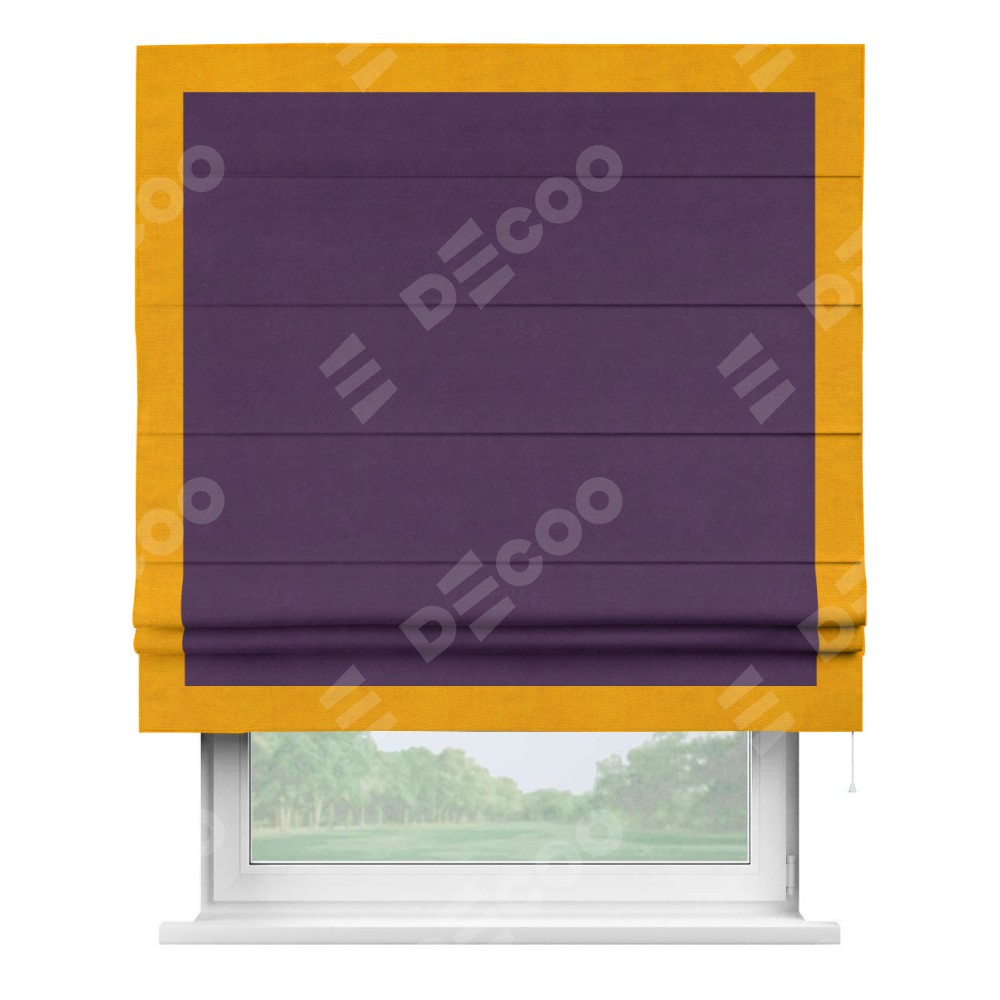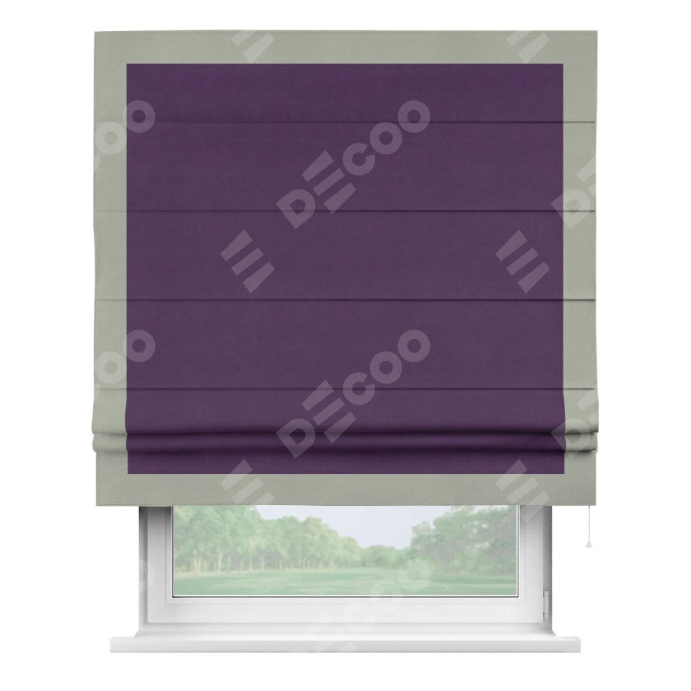 Римская штора производителя «Cortin», используется для проёма, пошита из ткани вельвет темно-фиолетовый, артикул ткани 17753. Отделка шторы кантом «Чесс», ткань для канта используется из вельвета разной расцветки на выбор. Имеет универсальный механизм и подходит для монтажа: на потолок, на стену и в нишу.