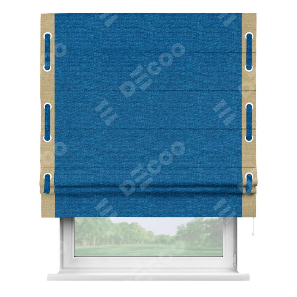 Римская штора «Кортин» с кантом Стрим Дуо (люверсы с пояском), для проема, ткань лён синий