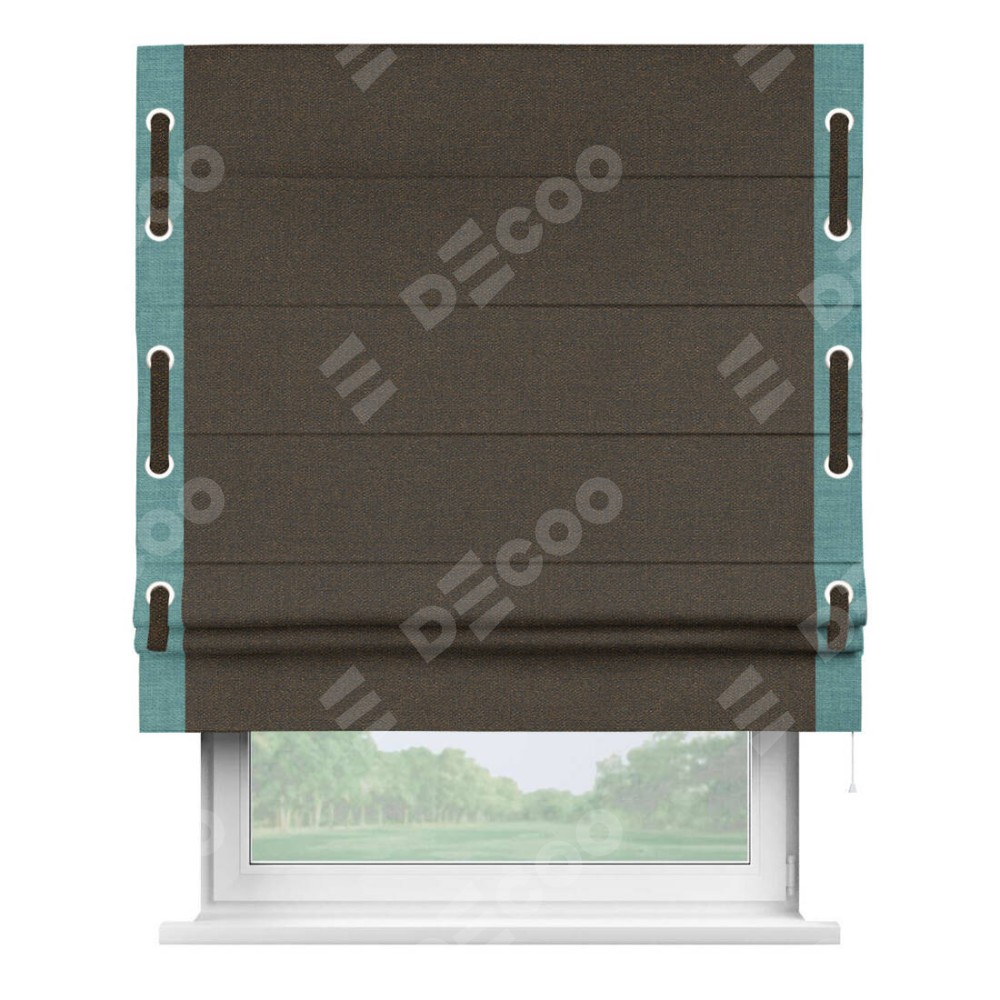 Римская штора «Кортин» с кантом Стрим Дуо (люверсы с пояском), для проема, ткань лён темно-коричневый