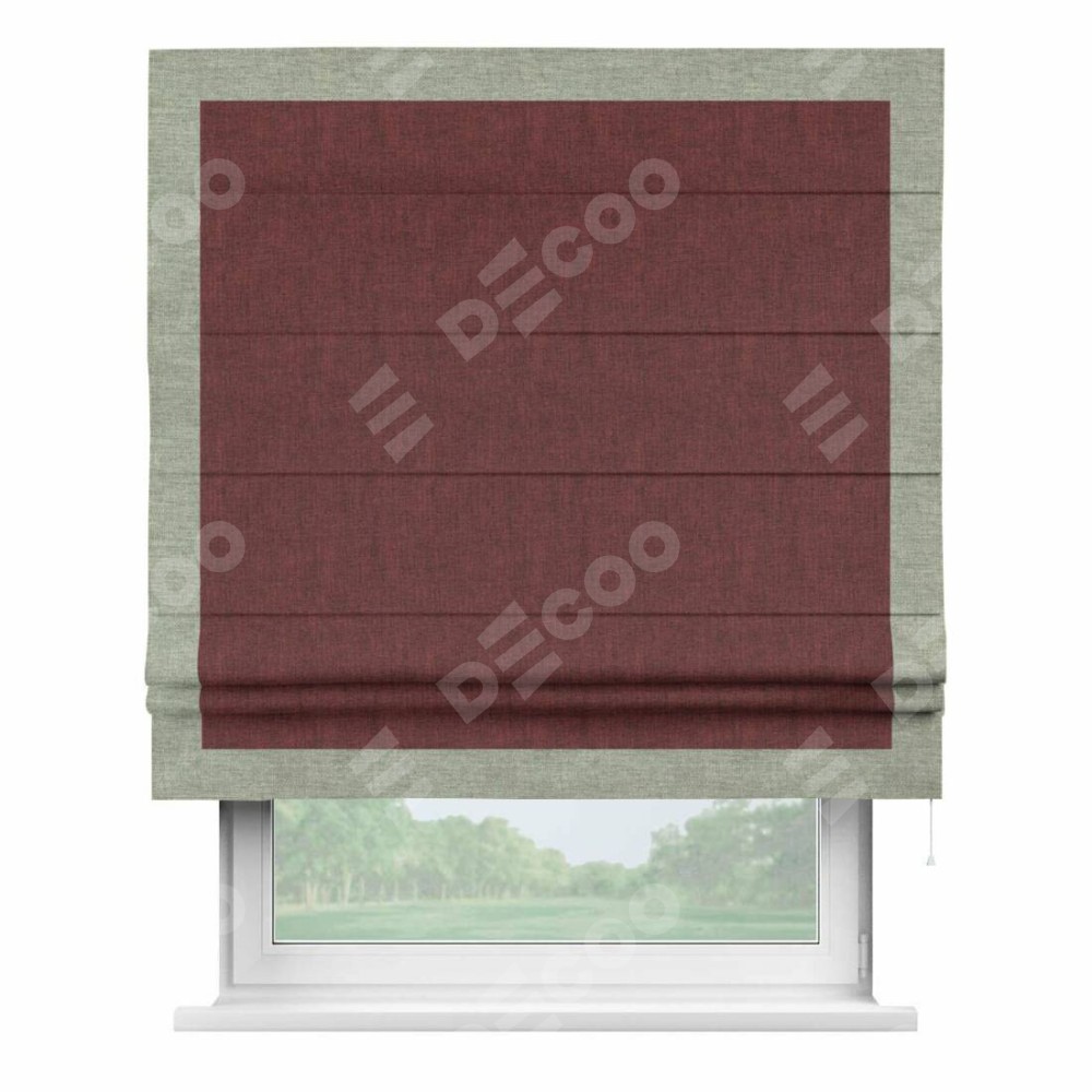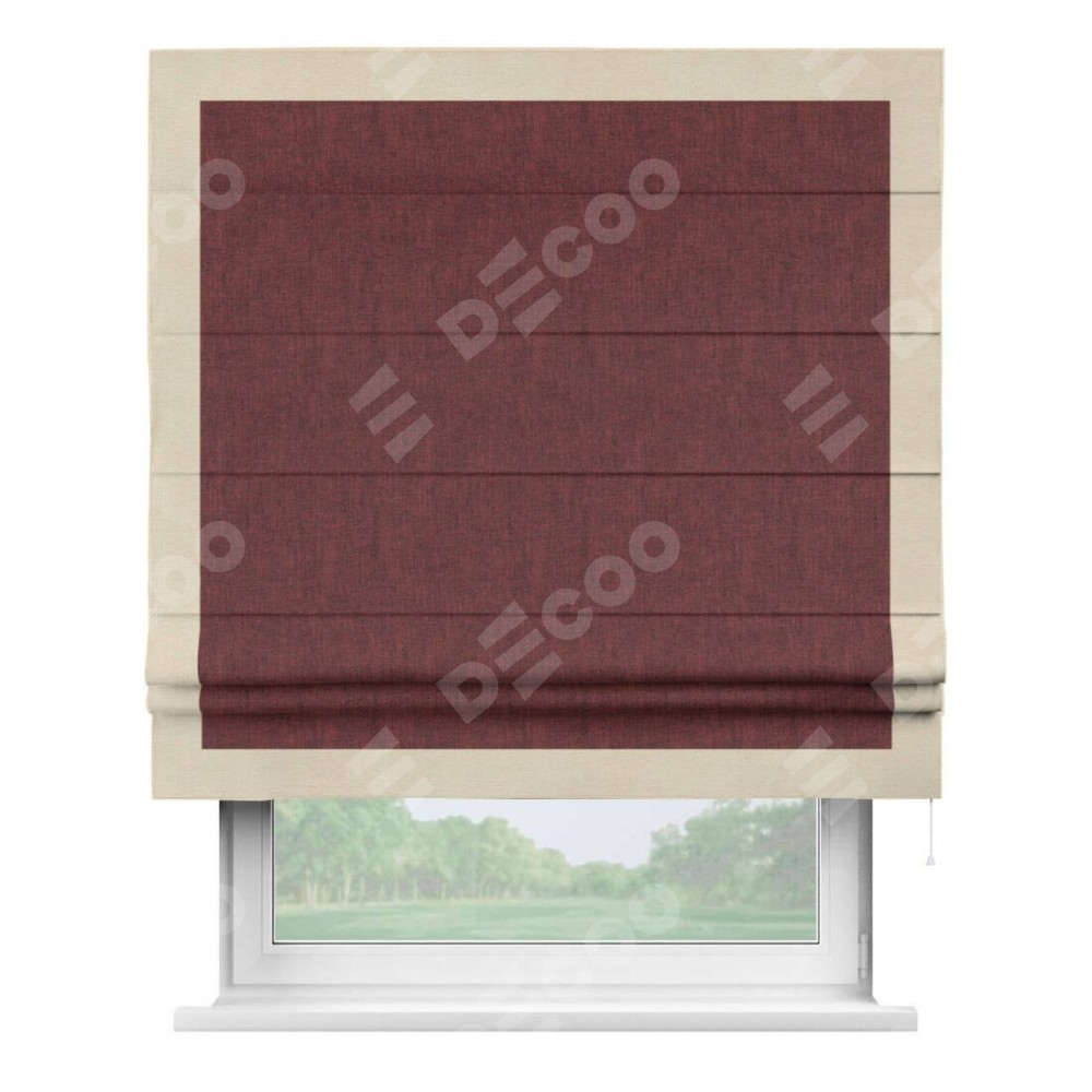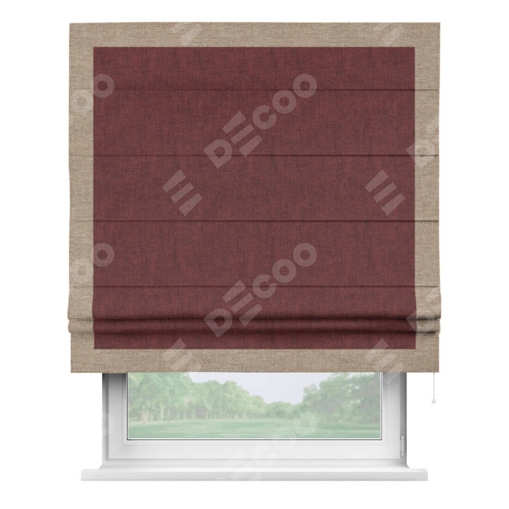 Римская штора «Кортин» с кантом Чесс, для проема, ткань лён кашемир бордовый