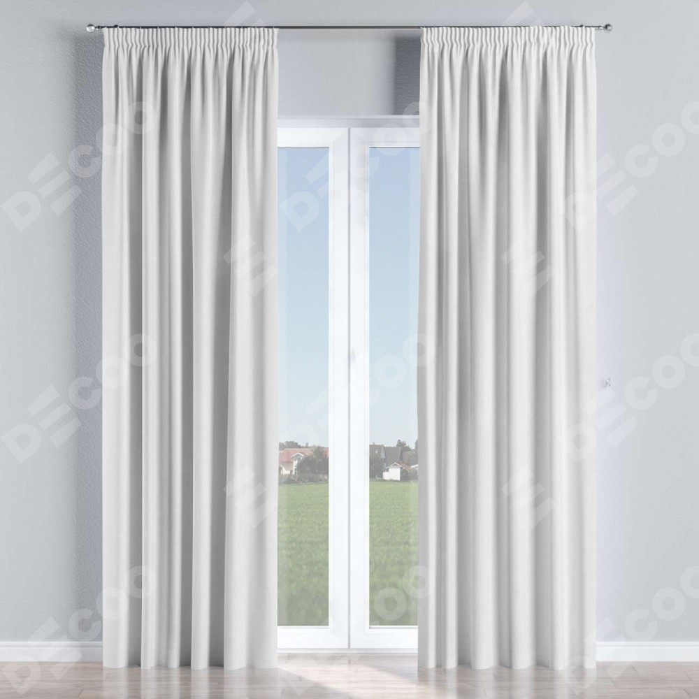 Комплект прямых штор, от производителя «Cortin», пошиты из ткани лён белый, артикул ткани 7439. С изнаночной стороны в верхней части штор пристрачивается шторная лента с декоративными складками «Карандаш». Для создания элегантных складок прямые шторы шьются по стандарту с коэффициентом 1:2 (на 100 см. ширины проёма 200 см. ширины ткани).