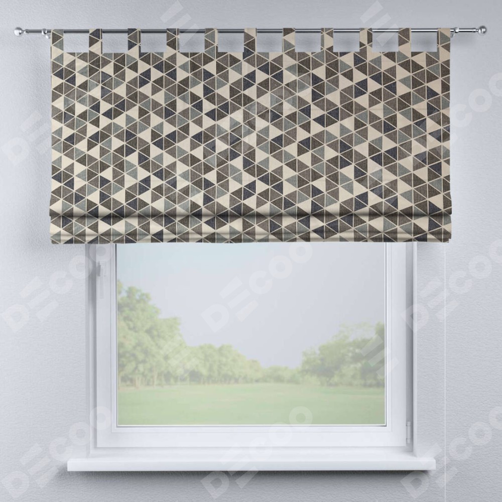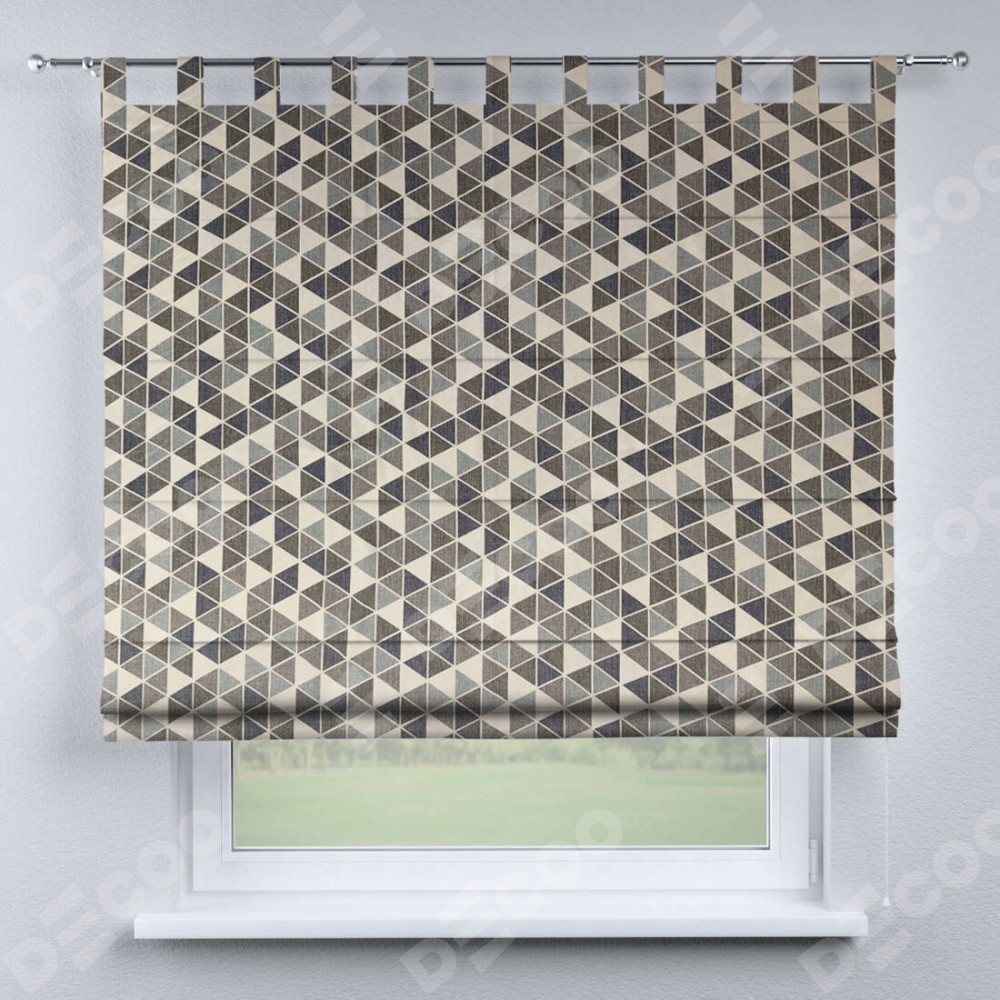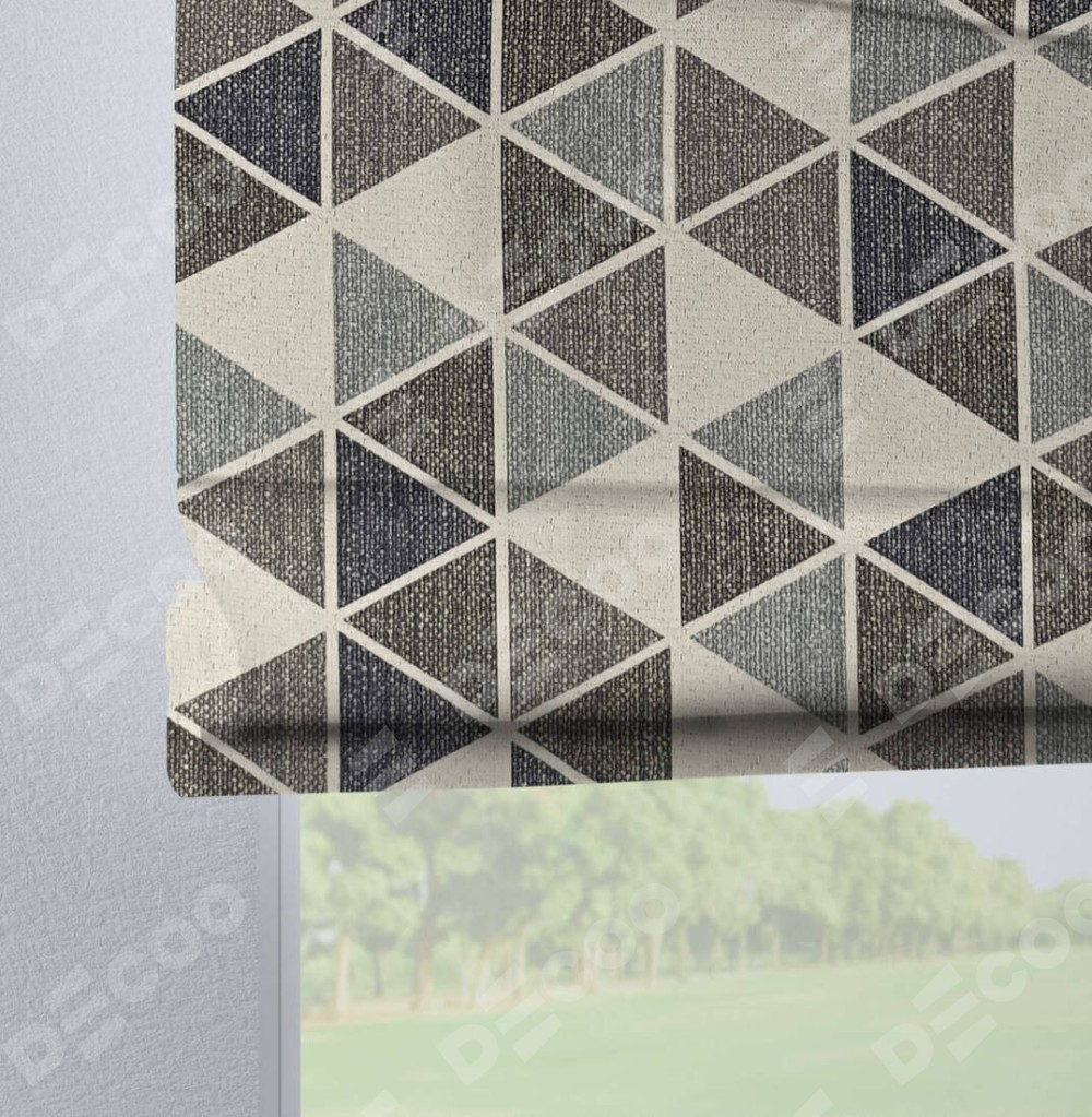 Римская штора производителя «Cortin», используется для проёма, пошита из ткани димаут «Треугольники синие», артикул ткани 23022. Данная модель пошита на петлях, комплектуется на выбор круглым карнизом и подходит для монтажа на стену. Римская штора на петлях имеет простую систему регулировки высоты, отличительным преимуществом данной модели является простой способ монтажа. Достаточно повесить ее на трубу и штора готова!
