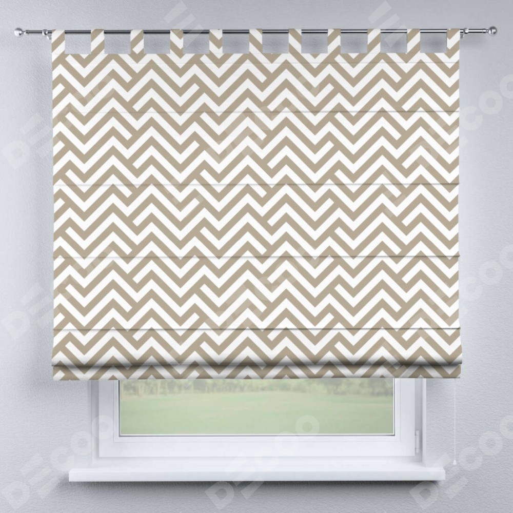Римская штора производителя «Cortin», используется для проёма, пошита из ткани блэкаут с нанесением сублимационной печати «Лабиринт». Данная модель пошита на петлях, комплектуется на выбор круглым карнизом и подходит для монтажа на стену. Римская штора на петлях имеет простую систему регулировки высоты, отличительным преимуществом данной модели является простой способ монтажа. Достаточно повесить ее на трубу и штора готова!
