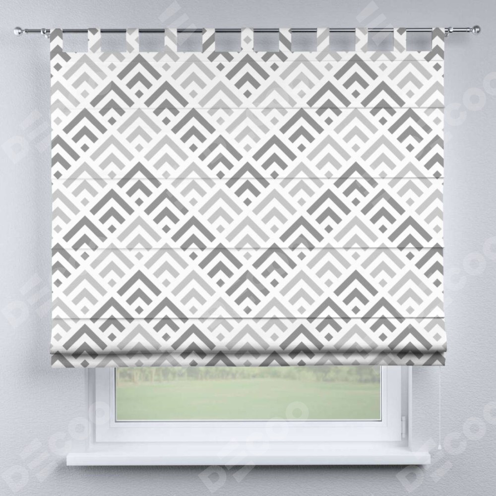 Классическая римская штора представляет собой полотно прикрепленное к карнизу, с обратной стороны полотна вшиты планки. С их помощь при сборе шторы образуются красивые горизонтальные складки.