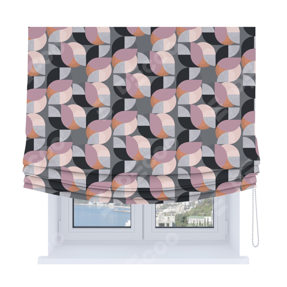Римская штора Soft производителя «Cortin», используется для проёма, пошита из ткани блэкаут с нанесением сублимационной печати «Абстрактный узор». Имеет универсальный механизм и подходит для монтажа: на потолок, на стену и в нишу. В отличие от стандартных римских штор, римская штора Soft не имеет горизонтальных вставок и нижнего отвеса. Это позволяет ткани произвольно драпироваться в свободные мягкие складки.
