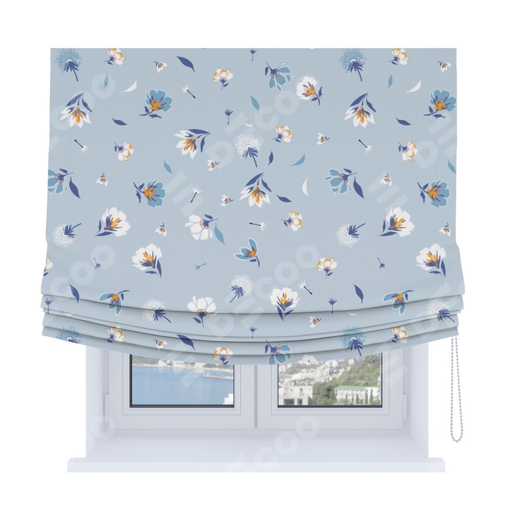 Римская штора Soft с мягкими складками, «Голубые цветы»