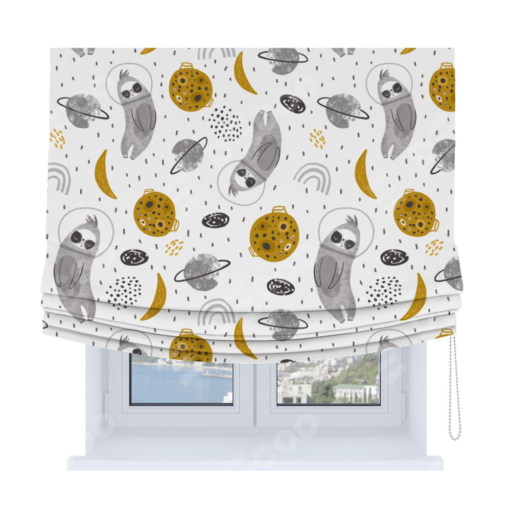 Римская штора Soft с мягкими складками, «Ленивец в шлеме»