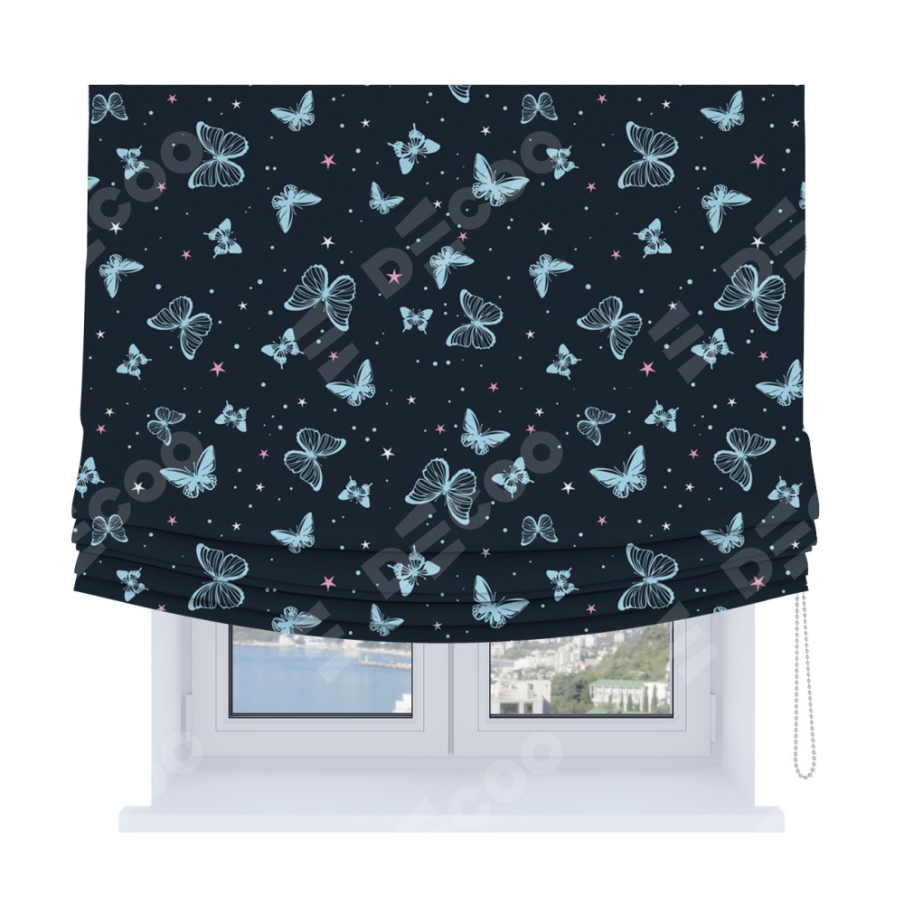 Римская штора Soft с мягкими складками, «Неоновые бабочки»
