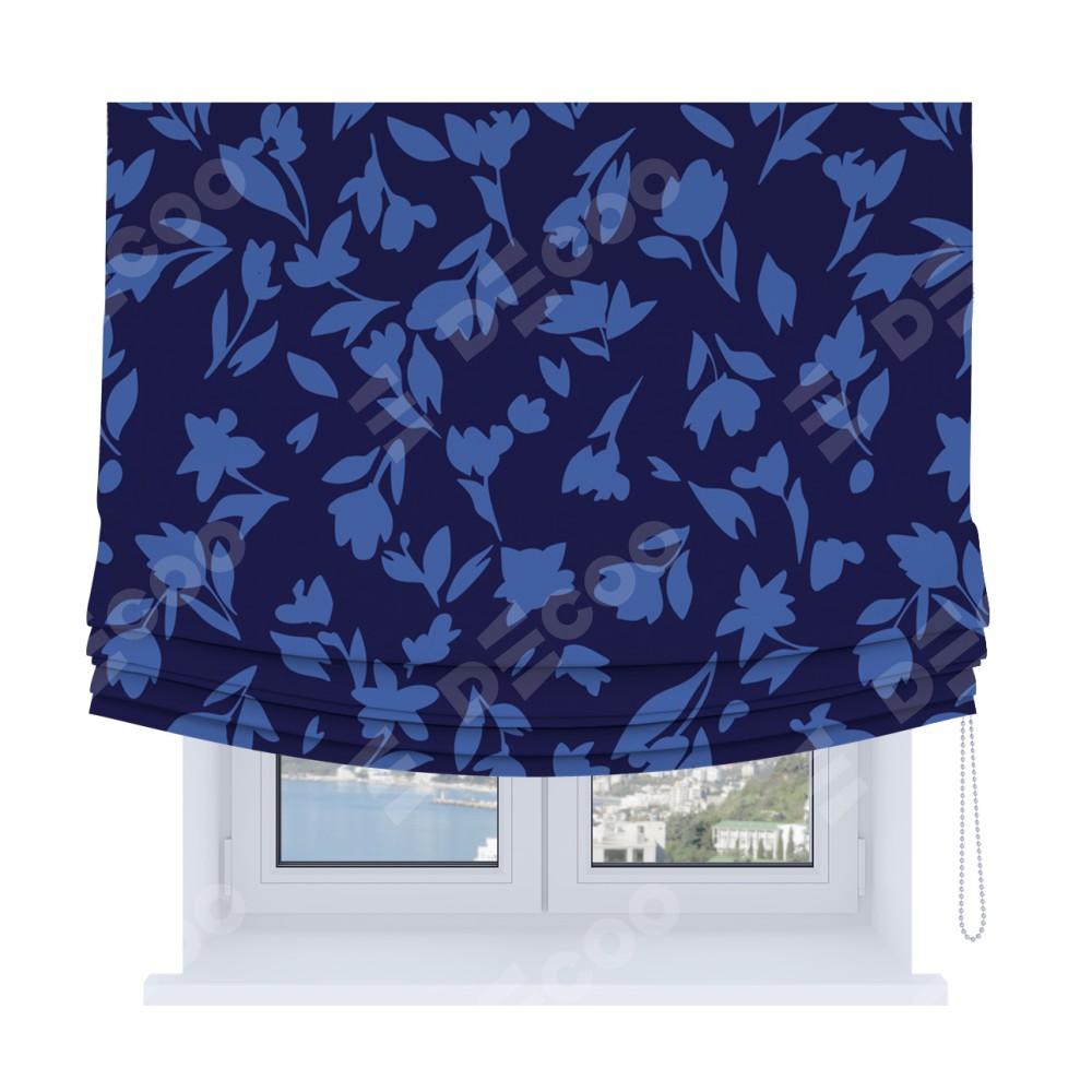 Римская штора Soft с мягкими складками, «Синие цветы»