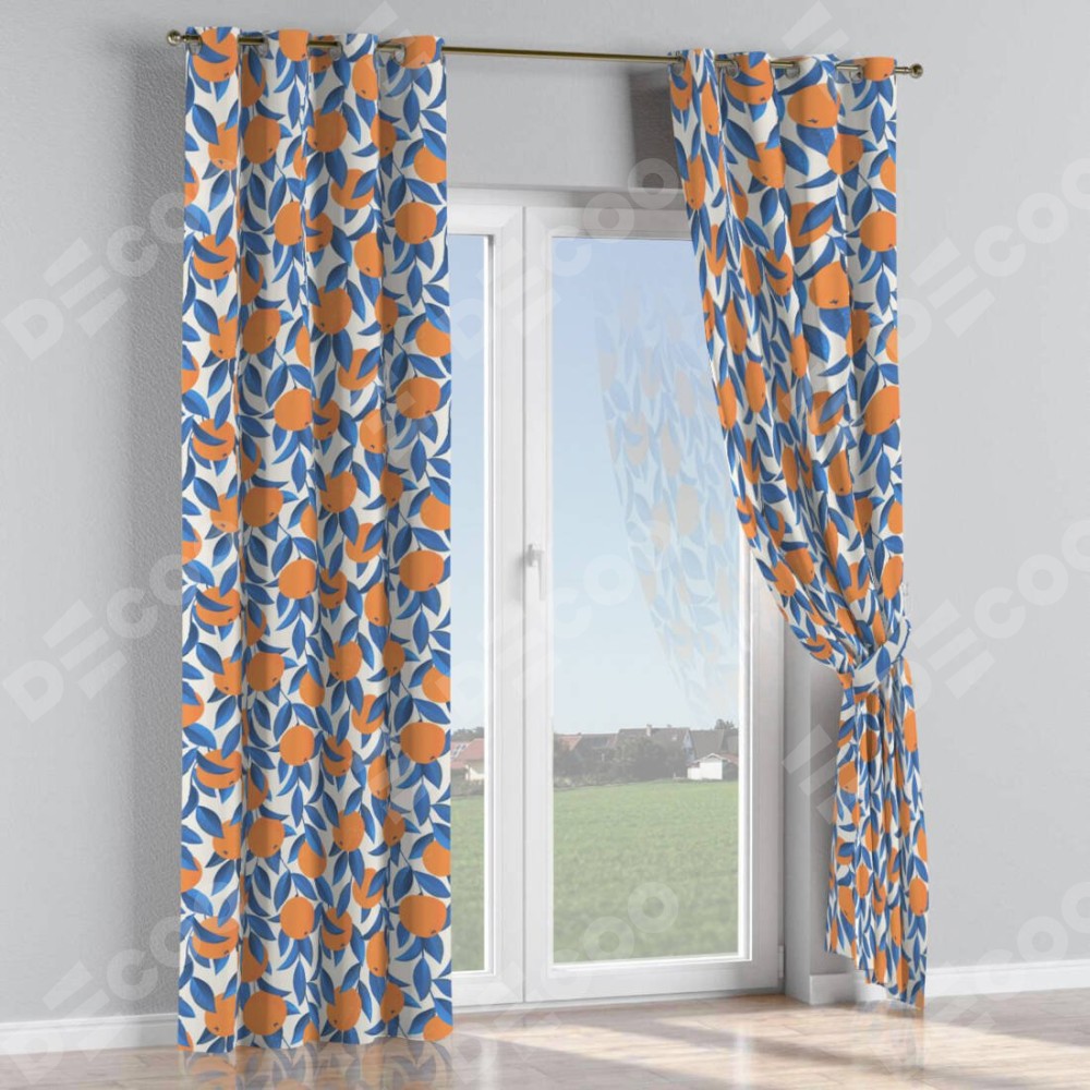 Комплект прямых штор, от производителя «Cortin», пошиты из ткани блэкаут с нанесением сублимационной печати «Апельсиновое настроение». Данная модель пошита на люверсах, комплектуется на выбор круглым карнизом и подходит для монтажа на стену или потолок. Прямые шторы на люверсах шьются по стандарту с коэффициентом 1/2 (на 100 см. ширины проёма 200 см. ширины ткани), отличительным преимуществом данной модели является простой способ монтажа. Достаточно повесить ее на трубу и штора готова!