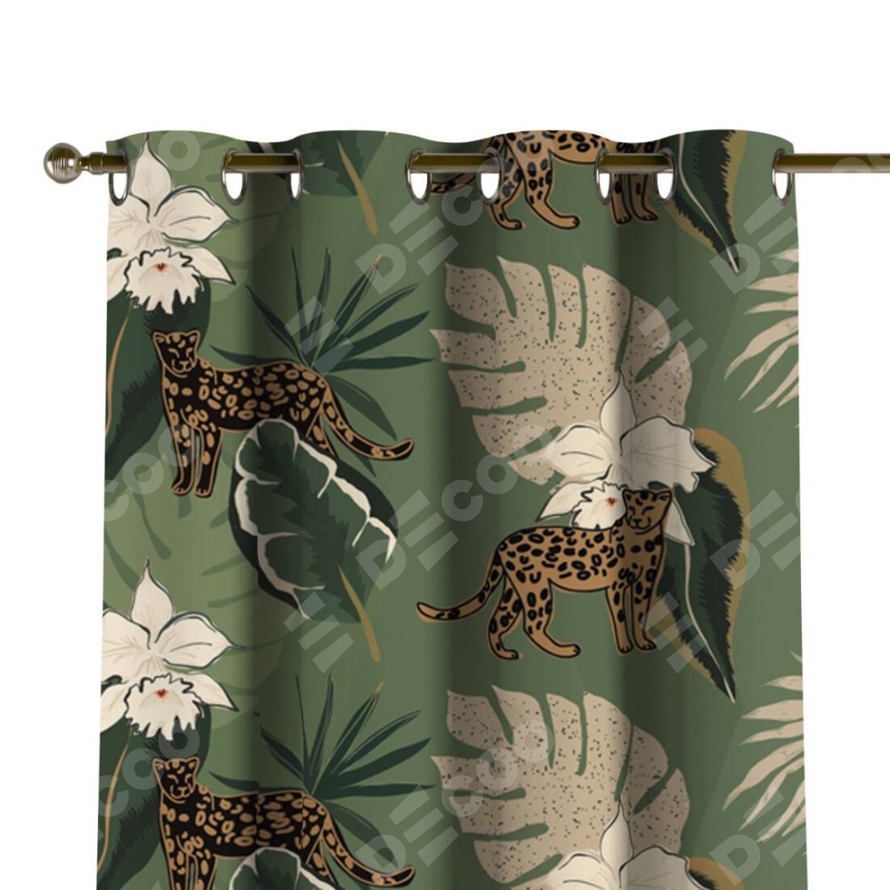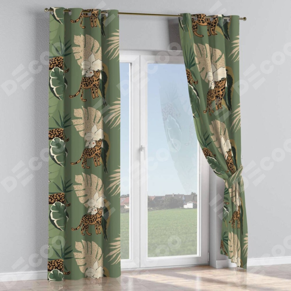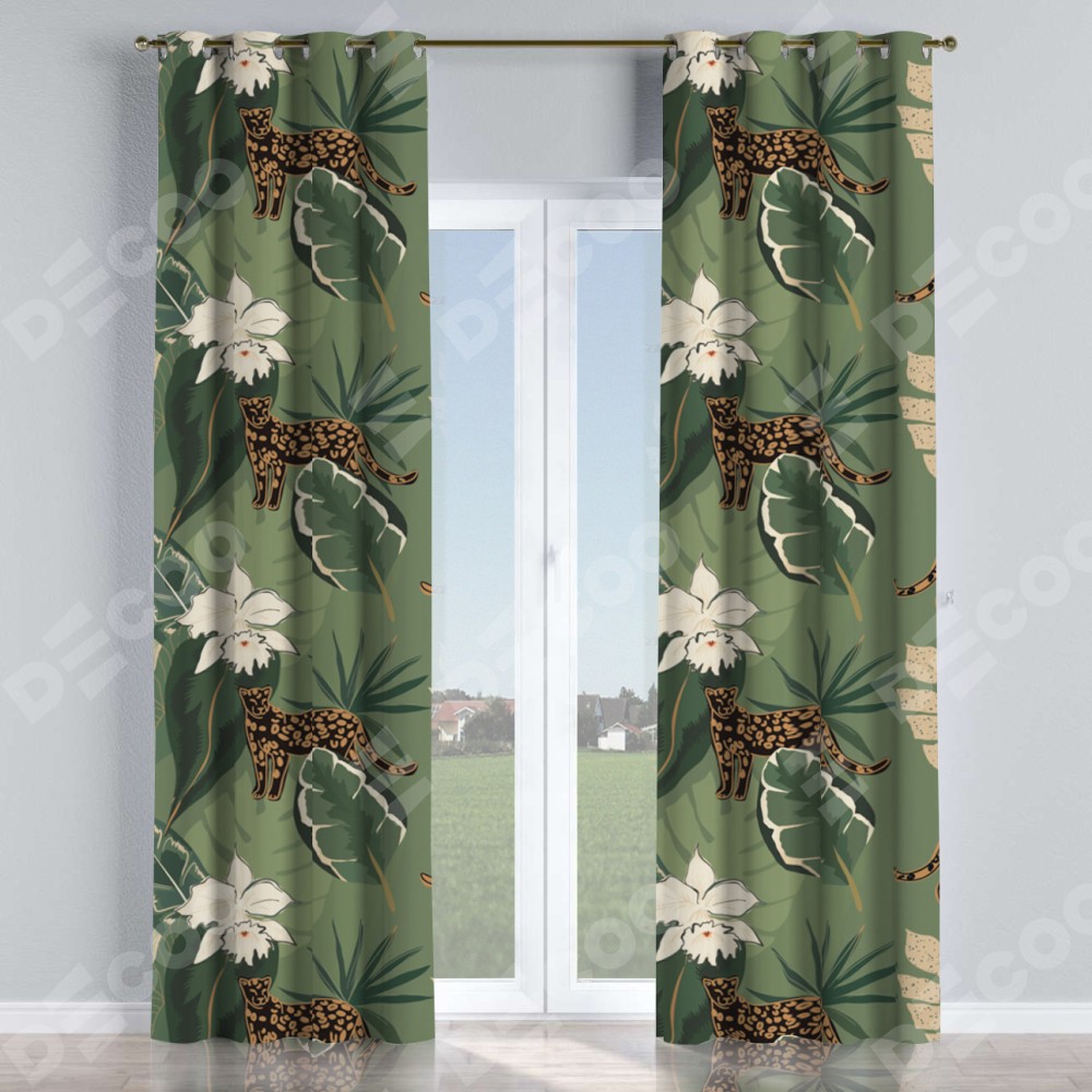 Комплект прямых штор, от производителя «Cortin», пошиты из ткани блэкаут с нанесением сублимационной печати «В тропическом лесу». Данная модель пошита на люверсах, комплектуется на выбор круглым карнизом и подходит для монтажа на стену или потолок. Прямые шторы на люверсах шьются по стандарту с коэффициентом 1/2 (на 100 см. ширины проёма 200 см. ширины ткани), отличительным преимуществом данной модели является простой способ монтажа. Достаточно повесить ее на трубу и штора готова!