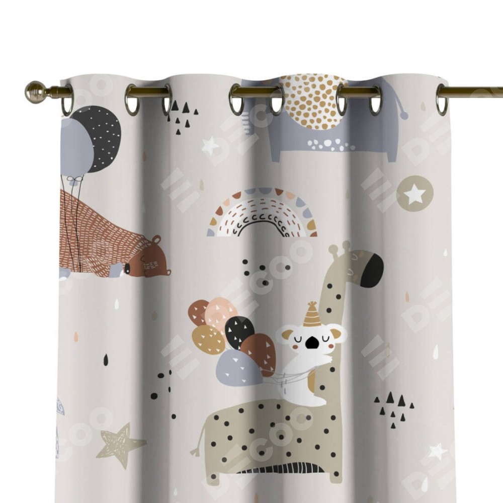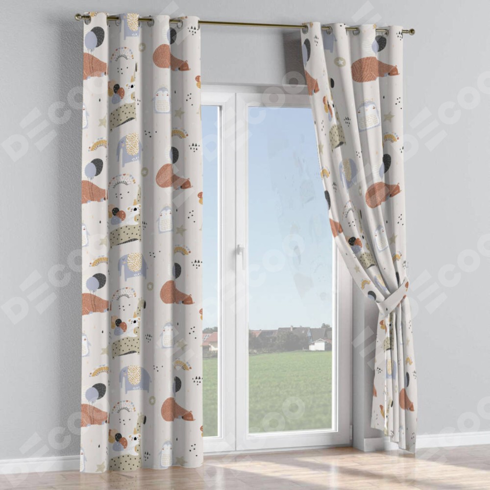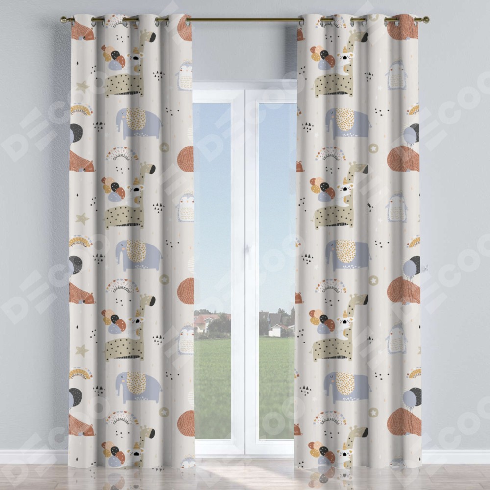 Комплект прямых штор, от производителя «Cortin», пошиты из ткани блэкаут с нанесением сублимационной печати «Вечеринка животных». Данная модель пошита на люверсах, комплектуется на выбор круглым карнизом и подходит для монтажа на стену или потолок. Прямые шторы на люверсах шьются по стандарту с коэффициентом 1/2 (на 100 см. ширины проёма 200 см. ширины ткани), отличительным преимуществом данной модели является простой способ монтажа. Достаточно повесить ее на трубу и штора готова!