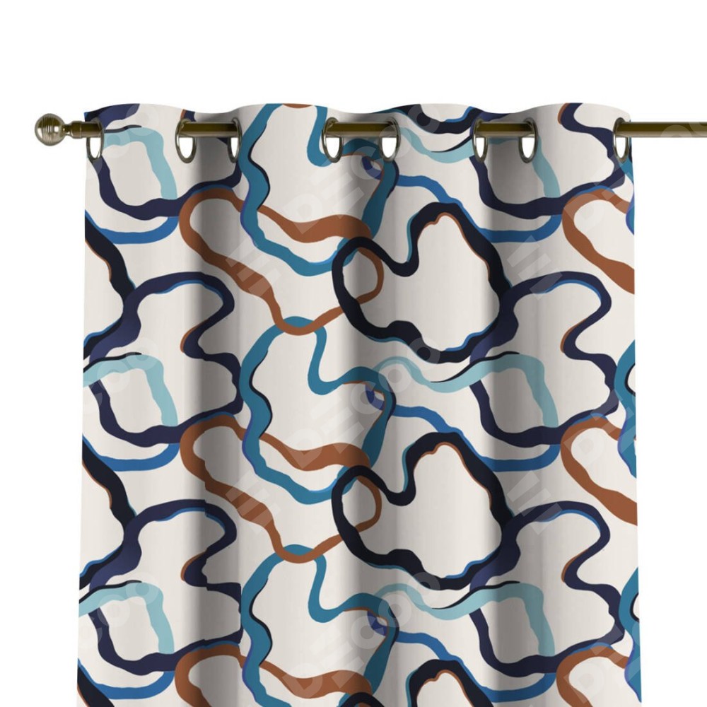 Комплект прямых штор, от производителя «Cortin», пошиты из ткани блэкаут с нанесением сублимационной печати «Волнистые ленты». Данная модель пошита на люверсах, комплектуется на выбор круглым карнизом и подходит для монтажа на стену или потолок. Прямые шторы на люверсах шьются по стандарту с коэффициентом 1/2 (на 100 см. ширины проёма 200 см. ширины ткани), отличительным преимуществом данной модели является простой способ монтажа. Достаточно повесить ее на трубу и штора готова!