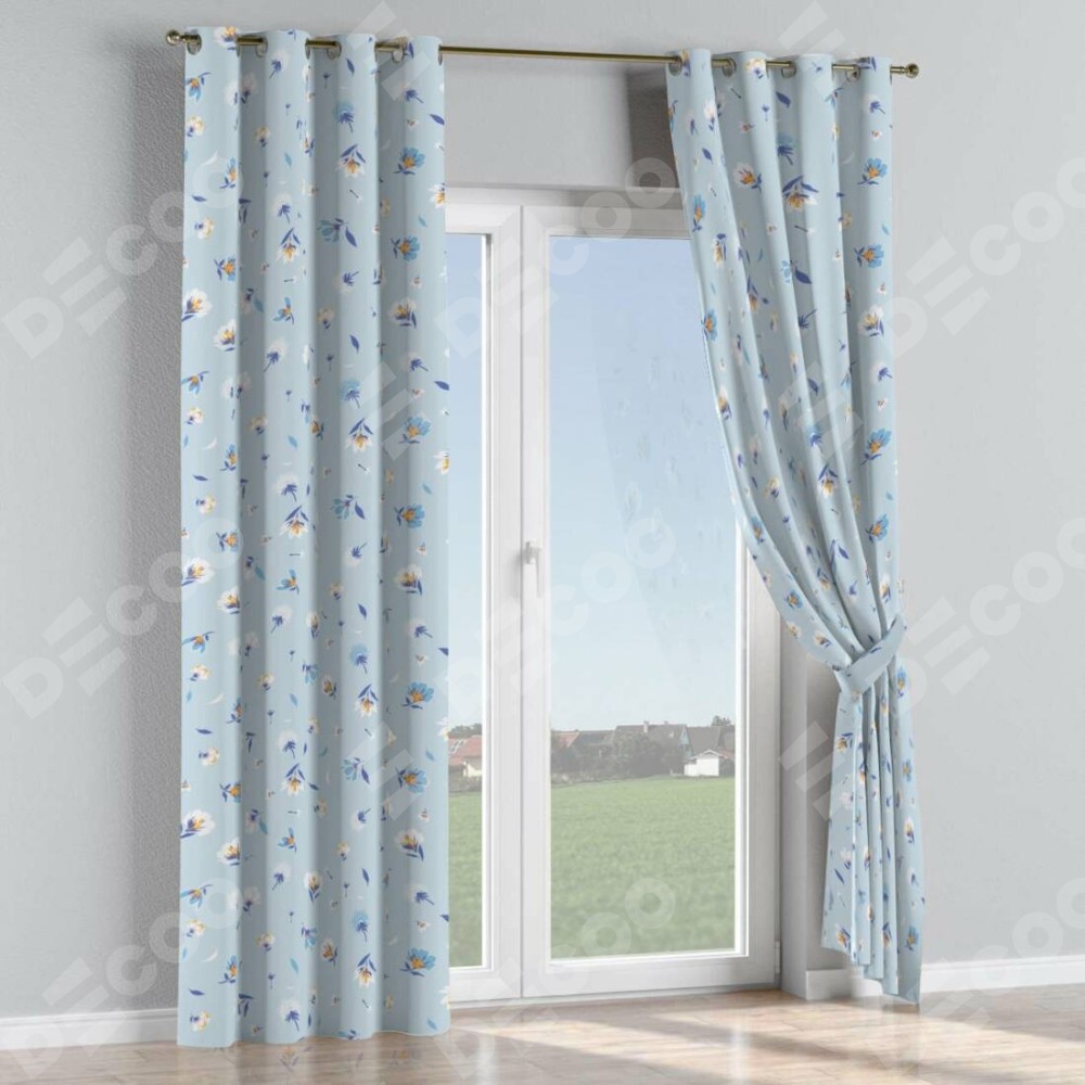 Комплект прямых штор, от производителя «Cortin», пошиты из ткани блэкаут с нанесением сублимационной печати «Голубые цветы». Данная модель пошита на люверсах, комплектуется на выбор круглым карнизом и подходит для монтажа на стену или потолок. Прямые шторы на люверсах шьются по стандарту с коэффициентом 1/2 (на 100 см. ширины проёма 200 см. ширины ткани), отличительным преимуществом данной модели является простой способ монтажа. Достаточно повесить ее на трубу и штора готова!