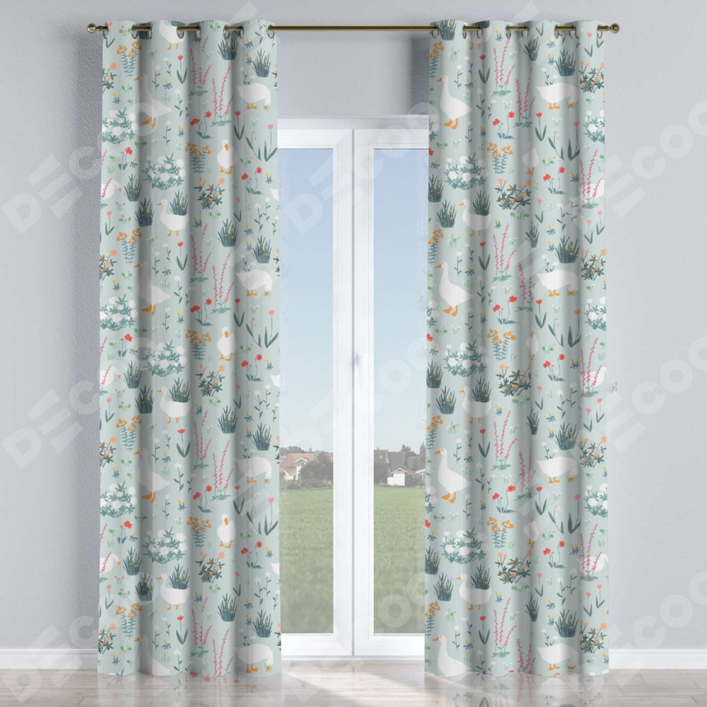 Комплект прямых штор, от производителя «Cortin», пошиты из ткани блэкаут с нанесением сублимационной печати «Гуси на лугу». Данная модель пошита на люверсах, комплектуется на выбор круглым карнизом и подходит для монтажа на стену или потолок. Прямые шторы на люверсах шьются по стандарту с коэффициентом 1/2 (на 100 см. ширины проёма 200 см. ширины ткани), отличительным преимуществом данной модели является простой способ монтажа. Достаточно повесить ее на трубу и штора готова!